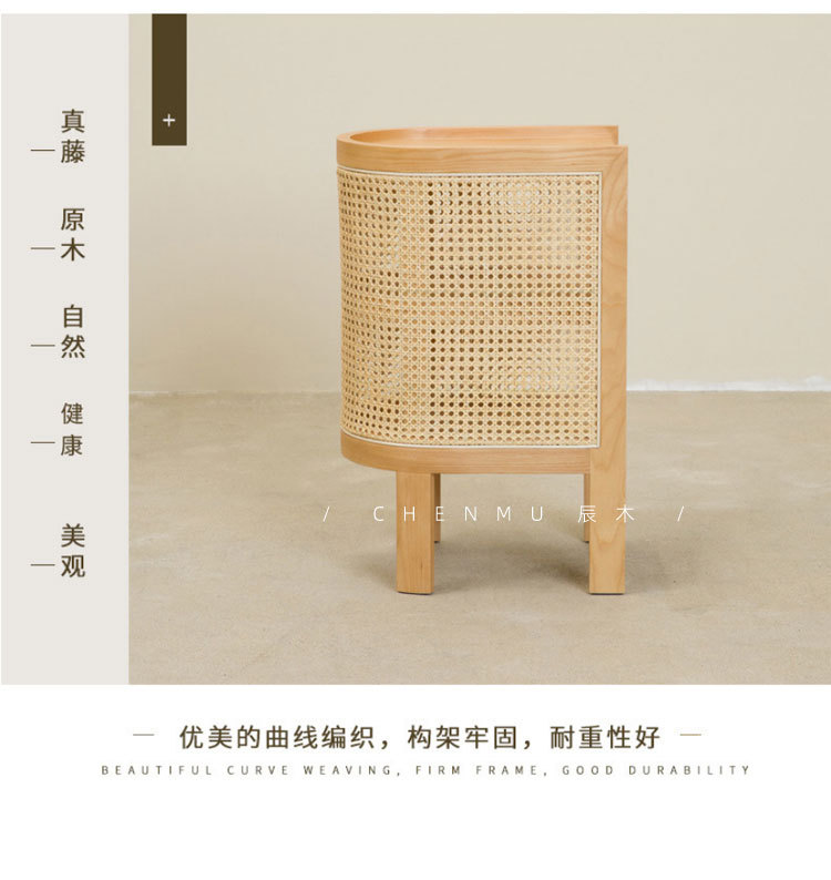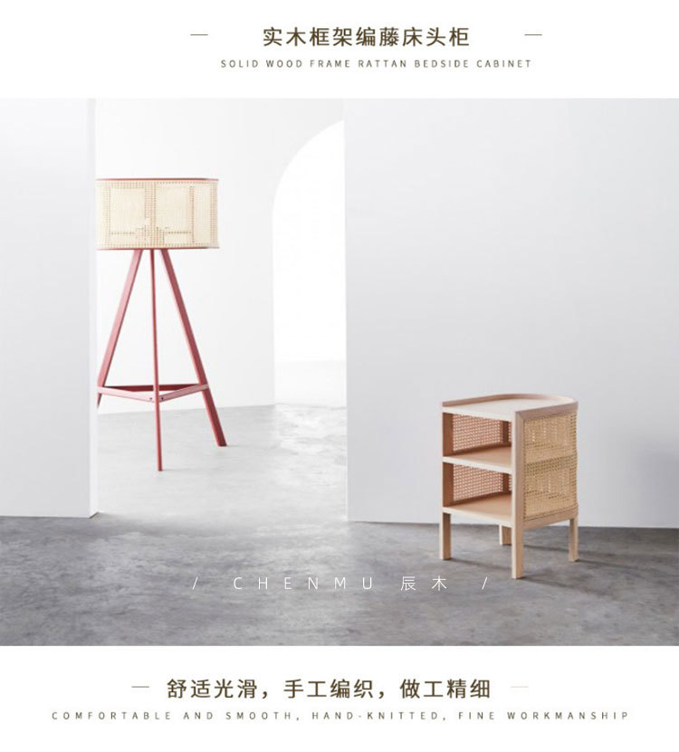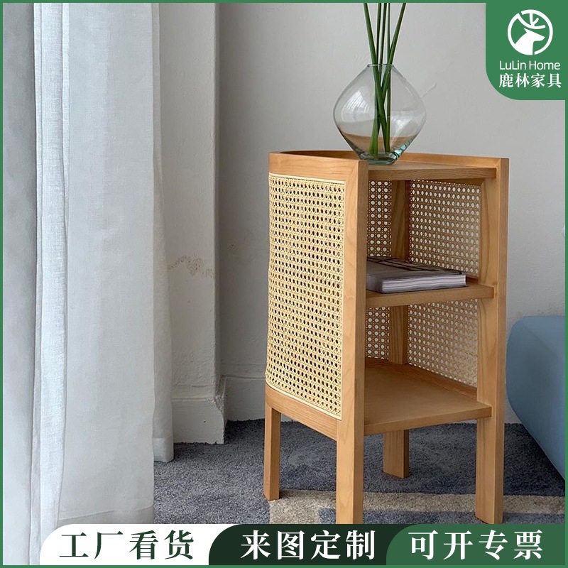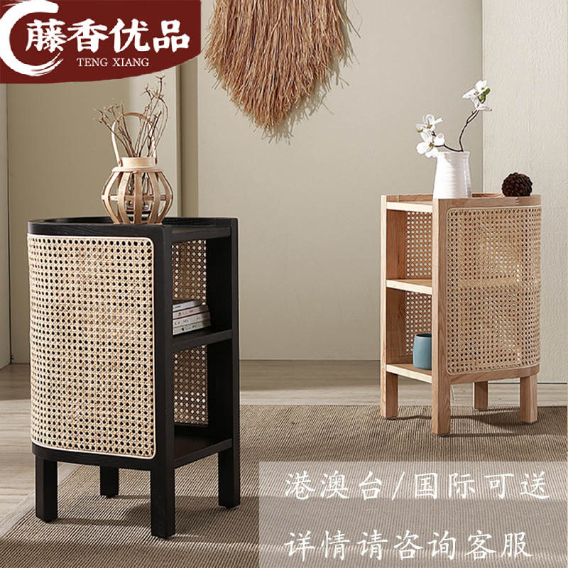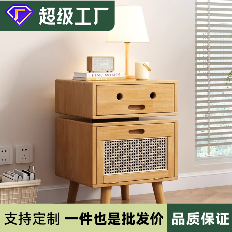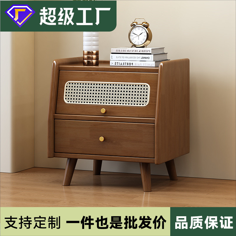 Insベッドの頭の棚が狭い北欧の実木藤編寝室の小さいサイズのサイドキャビネットの簡易な民宿のロッカーは日本式に収納します。