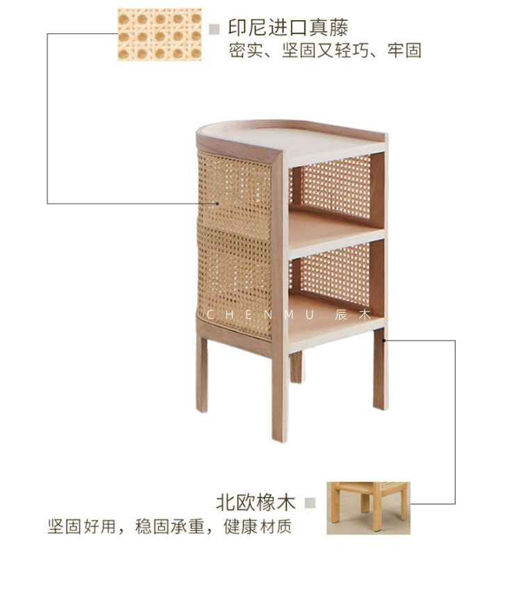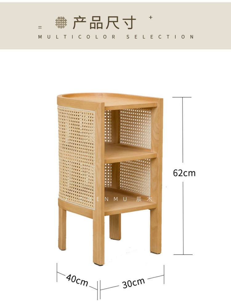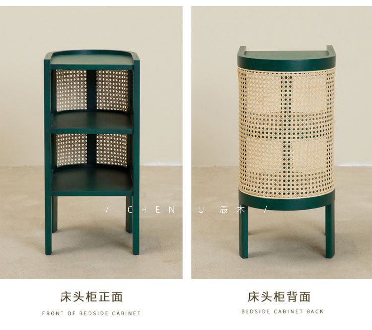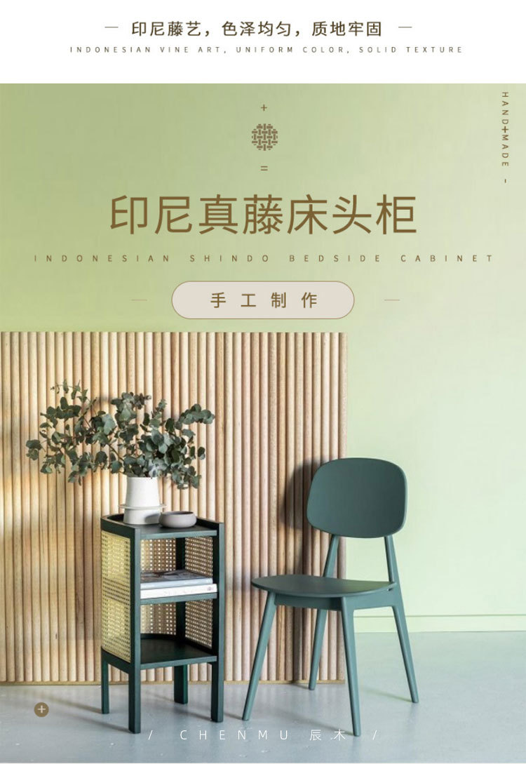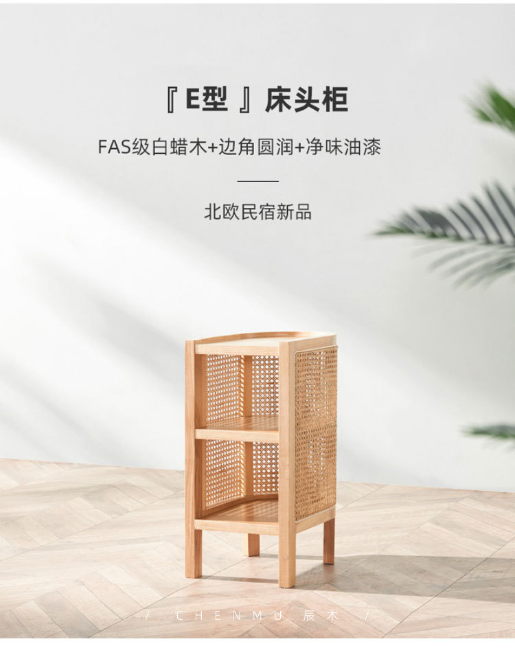 Insベッドの頭の棚が狭い北欧の実木藤編寝室の小さいサイズのサイドキャビネットの簡易な民宿のロッカーは日本式に収納します。