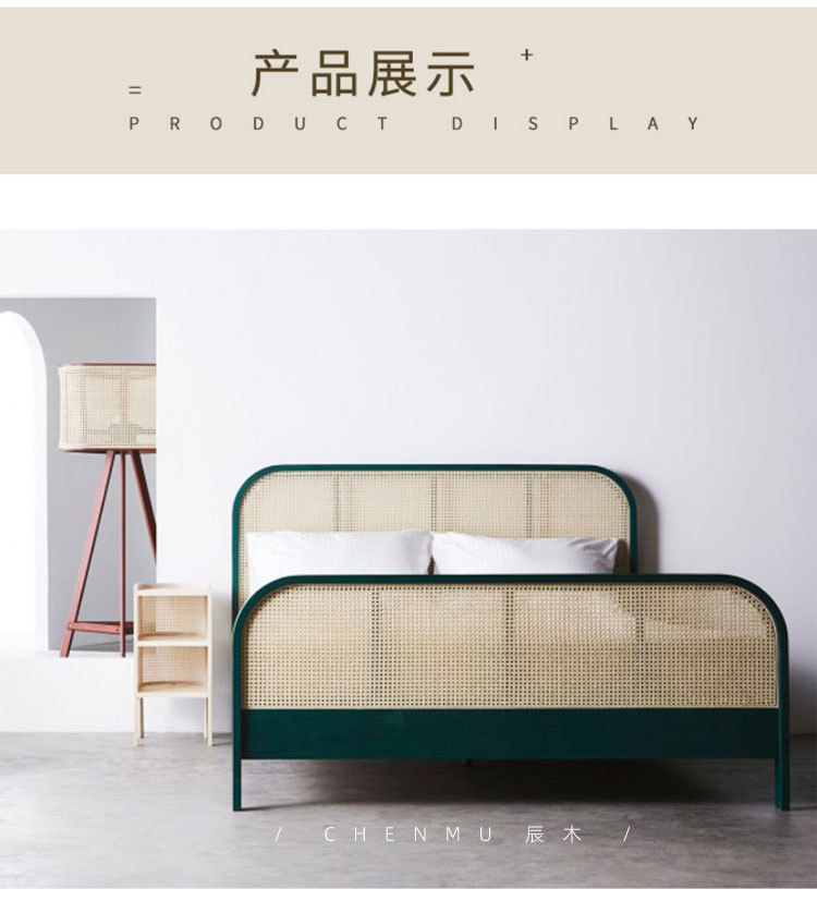 木の藤はベッドの頭の棚を編んで、日本式の小さいサイドの棚は物の棚を置きます。
