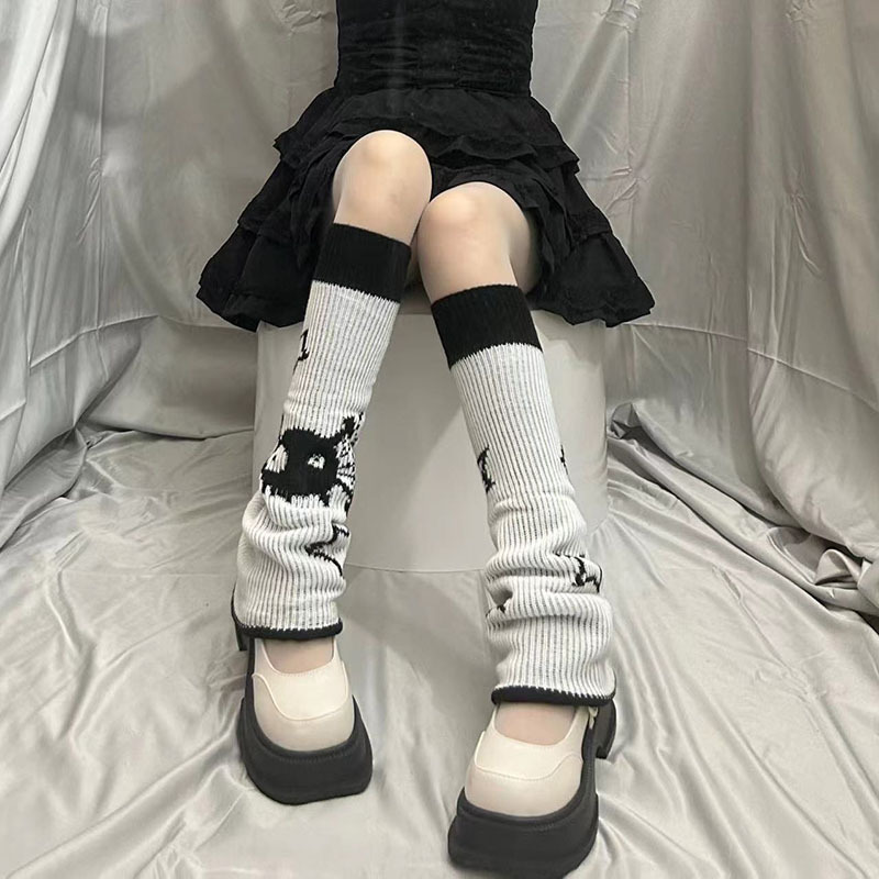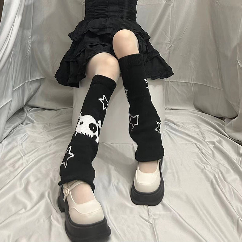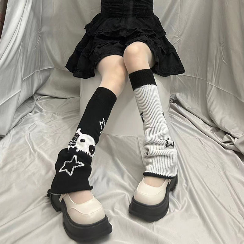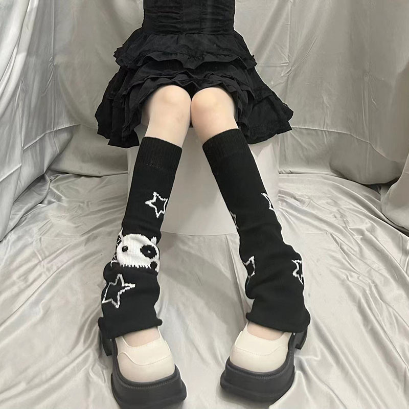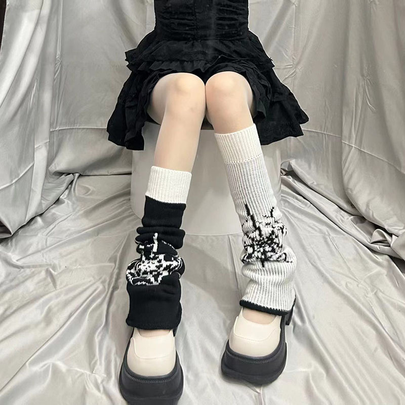 Y 2k亜文化jk靴下の女性の黒い長い筒のふくらはぎの靴下のニットの靴下のカバーの星の足のカバーのギャルの山の靴下の潮