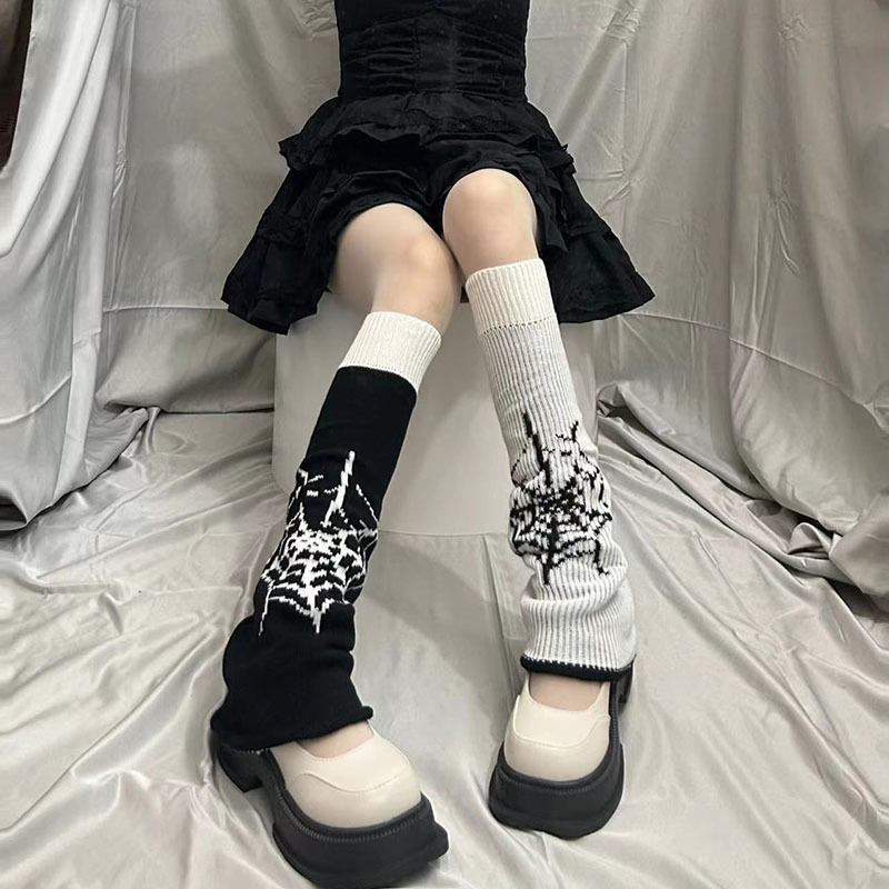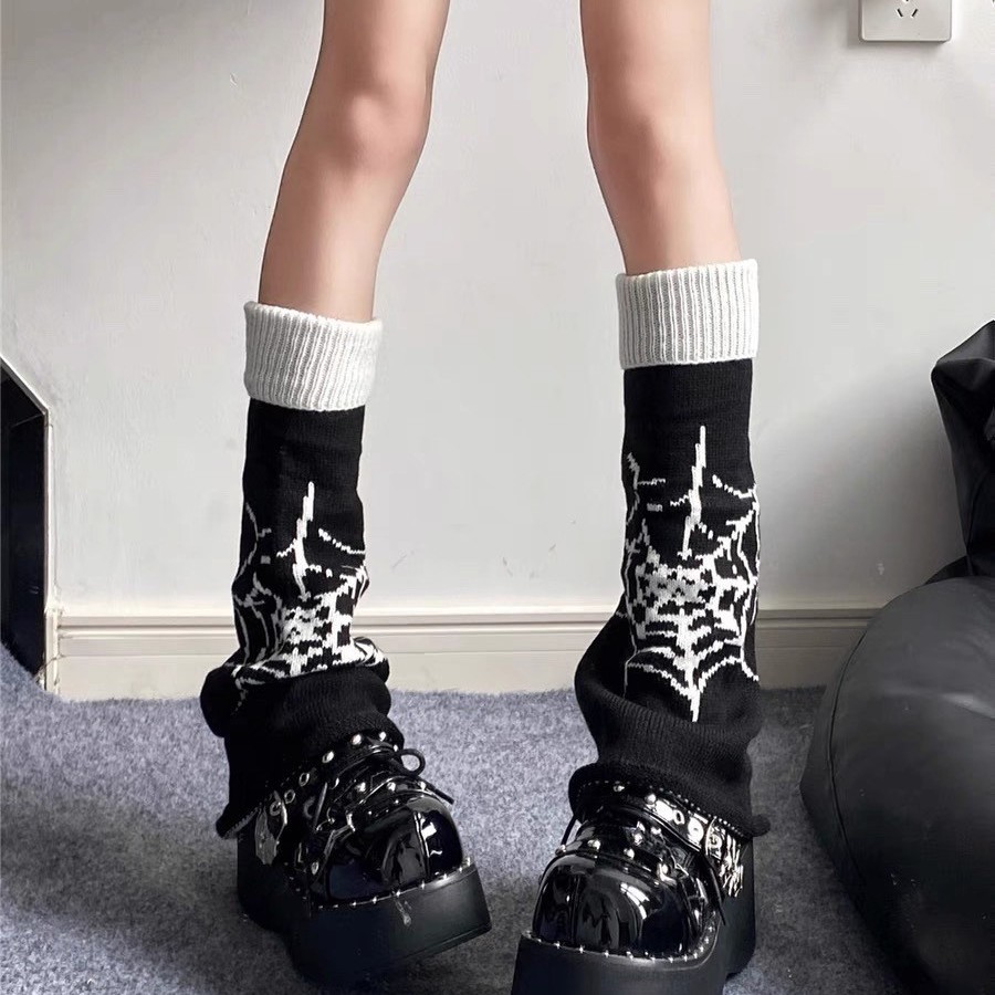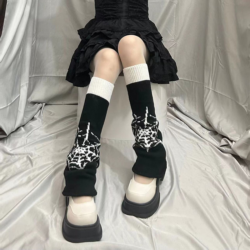 朋克风蜘蛛网星星小腿袜套辣妹y2k亚文化阔腿喇叭堆堆袜腿套