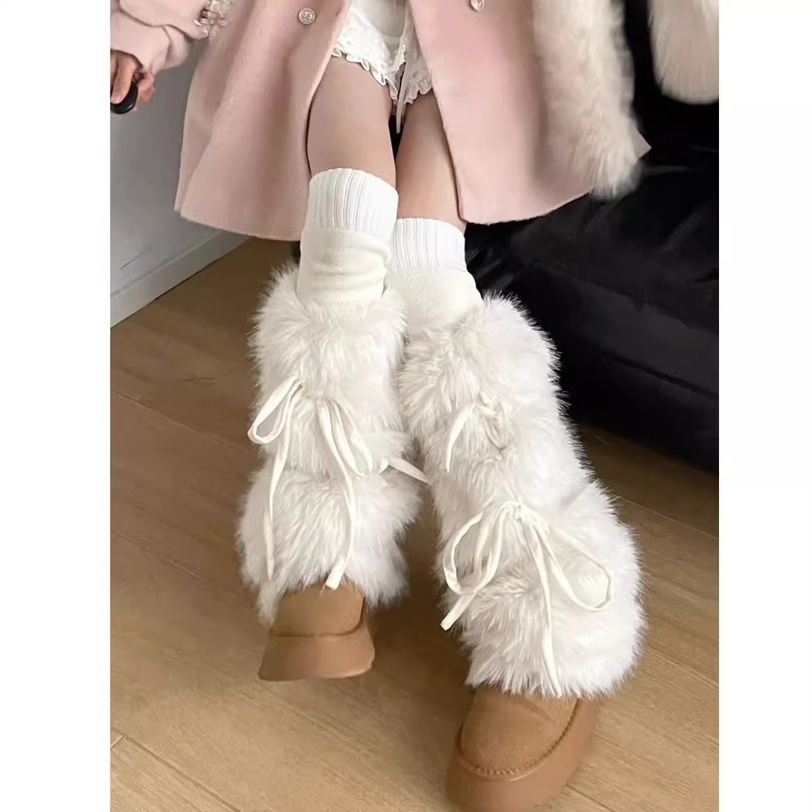Y 2kギャルのぬいぐるみの靴下の白い毛の足のカバーの靴下の女性の冬の亜文化jkは毛皮の靴のカバーをまねます。