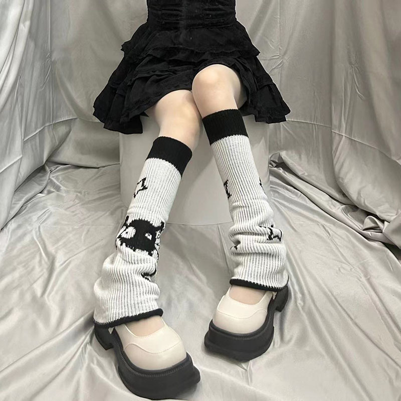 非対称のスカルの頭の広い足の靴下のカバーy 2kギャルの原宿の風の足のカバーの個性のメリヤスの靴下は反対して2着ます。