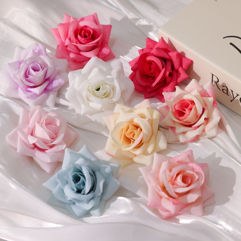 シミュレーションのバラの花の頭diyの手首の花輪の髪飾りのヘアピンの花の壁の装飾の部品の結婚祝いの装飾の花の卸売り