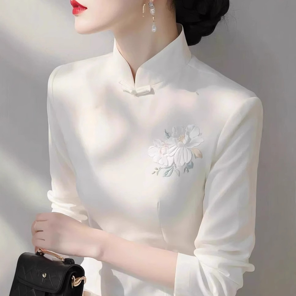 春の新中国風の独特な綺麗な大衆のシックで贅沢な高級感のある白いジャカードのシャツ