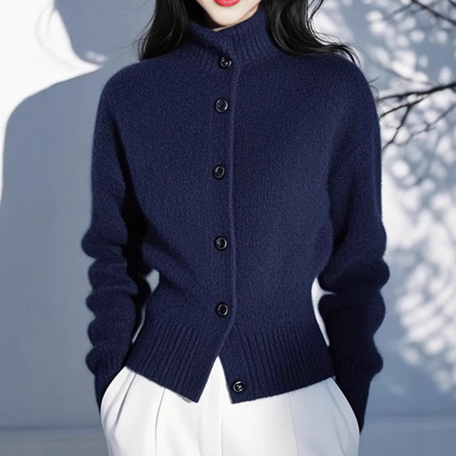ファッション高級感絶美ブルー長袖セーターニットカーディガン