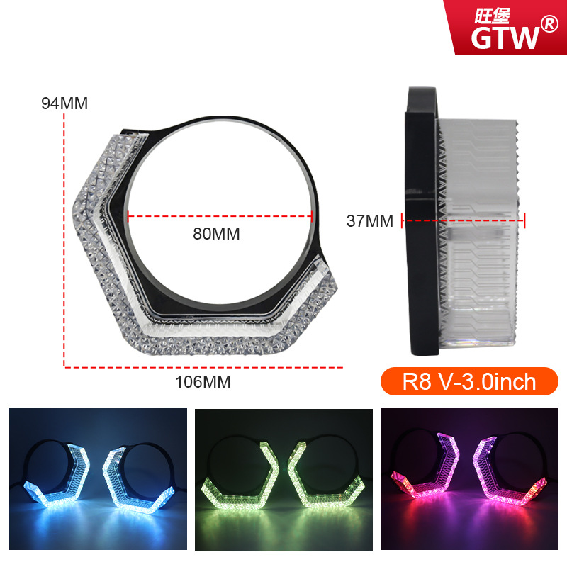 ユニバーサルオートバイ車 R8-V 3inch エンジェルアイ統合カバー装飾カバー LED 光導ブルートゥース制御マルチカラー