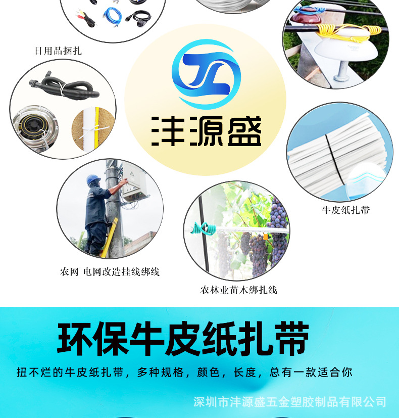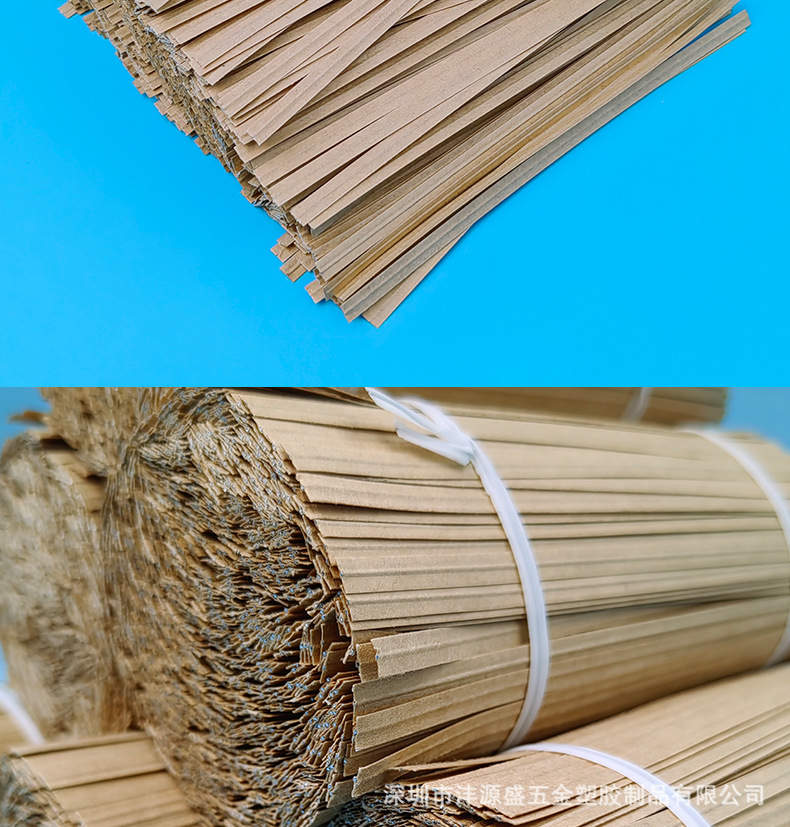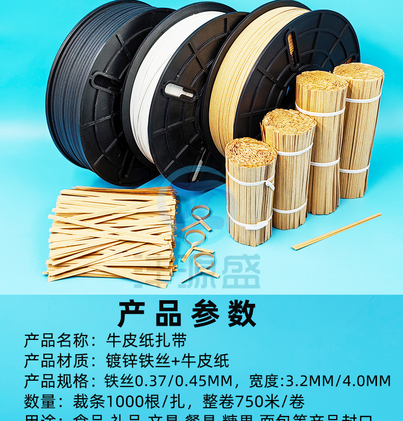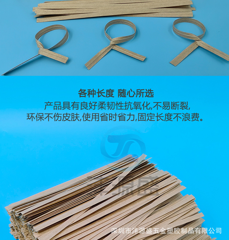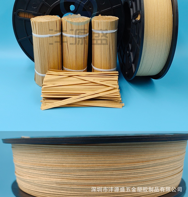 牛皮纸扎线带由镀锌铁丝+牛皮纸原料挤出制作而成,具有良好的耐酸、腐蚀、柔韧性好、不生锈,不伤手,扭力好,不易老化、承受力强
