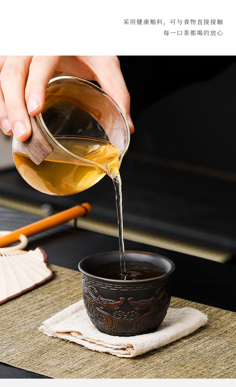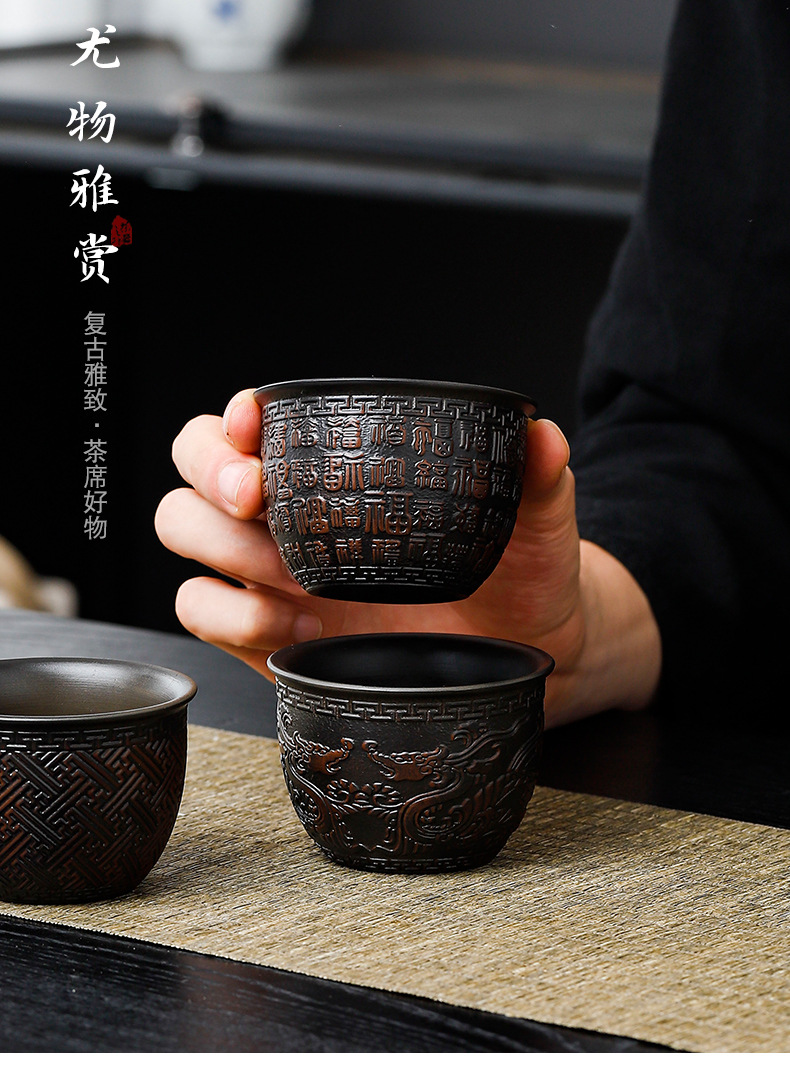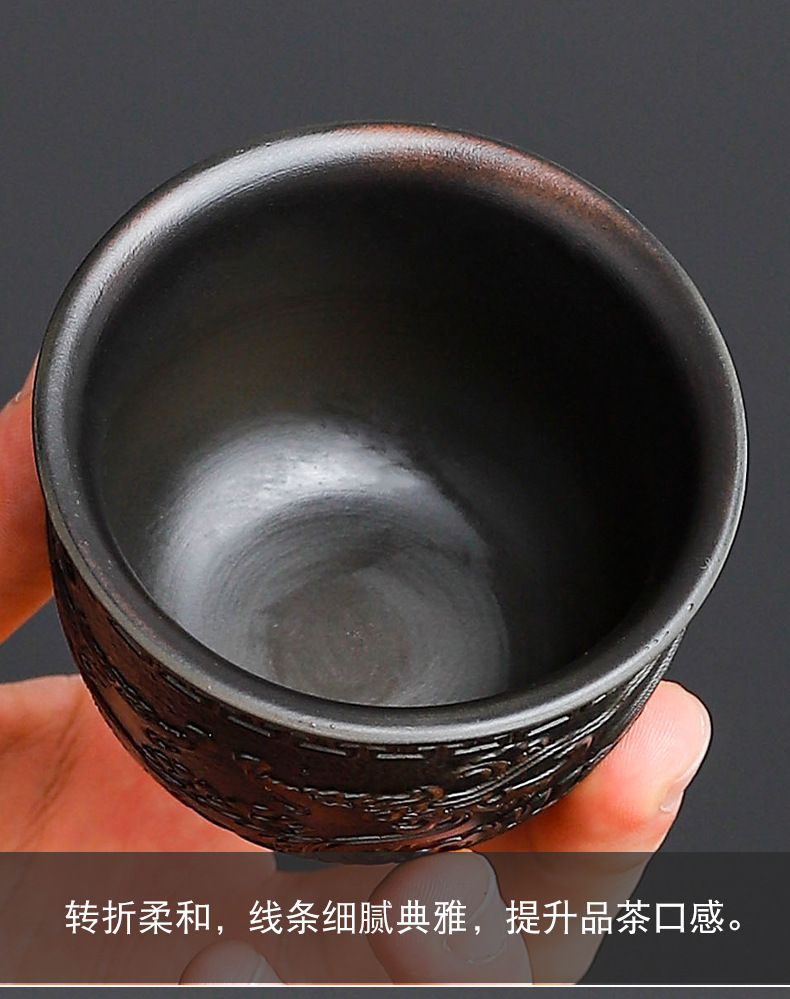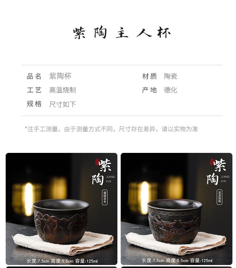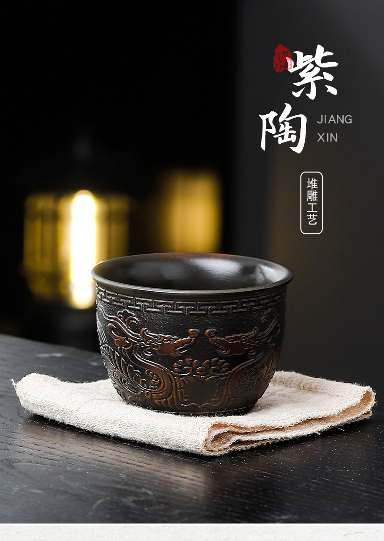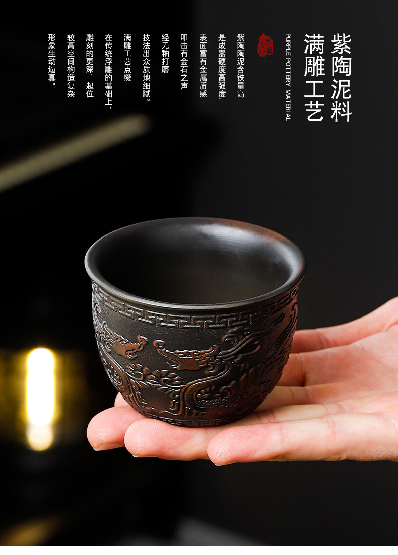 建水紫陶浮雕祥龙品茗杯手工茶杯主人杯高端泡茶器皿家用有档次