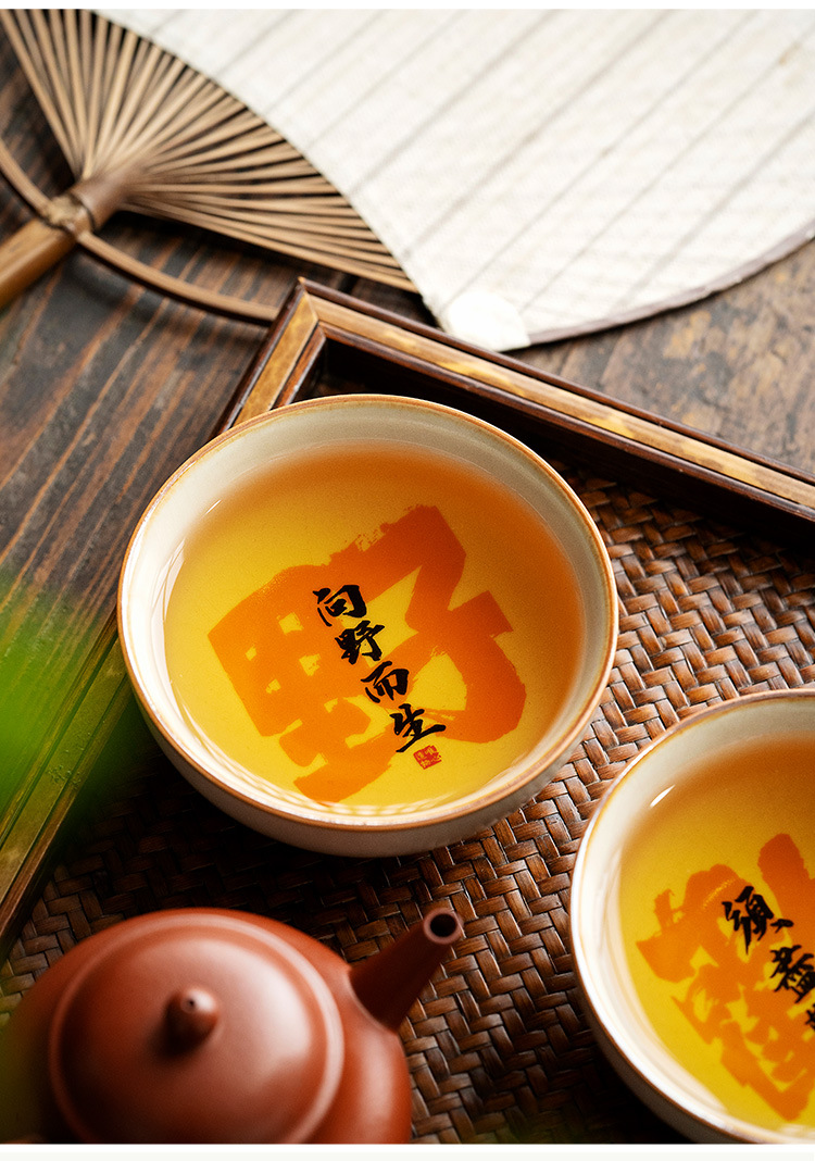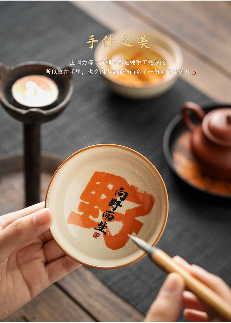 草木灰斗笠杯カップ主人杯客杯レトロカンフー中国式茶陶磁器釉薬下彩品茗杯