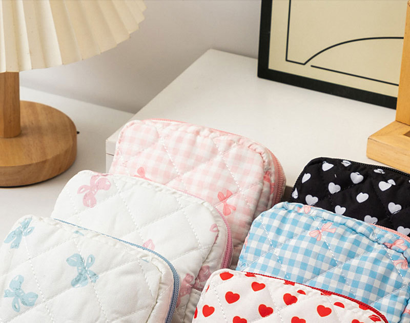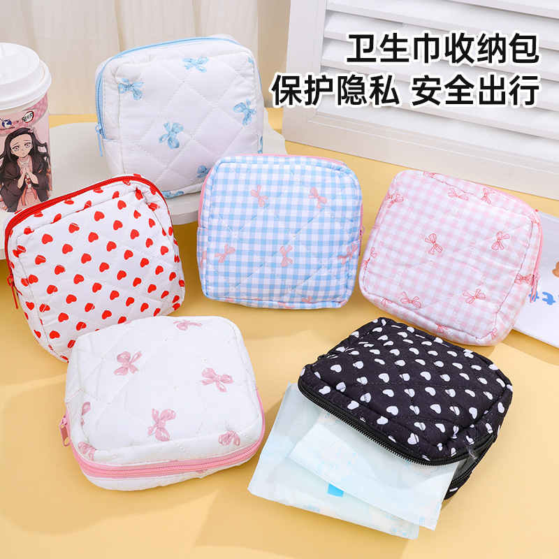 新款可爱棉布绗棉收纳包耳机数据线女性化妆品化妆包钱包卫生棉包