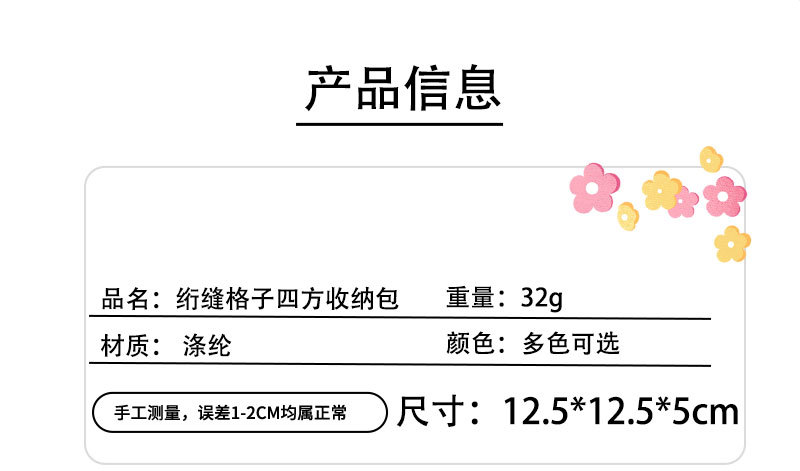商品番号 キルティングチェック柄の小さな愛の四角い収納袋