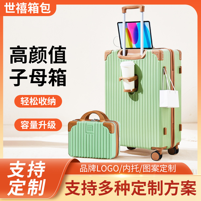 多功能复古万向轮旅行箱大容量带密码登机子母箱带杯架收纳拉杆箱