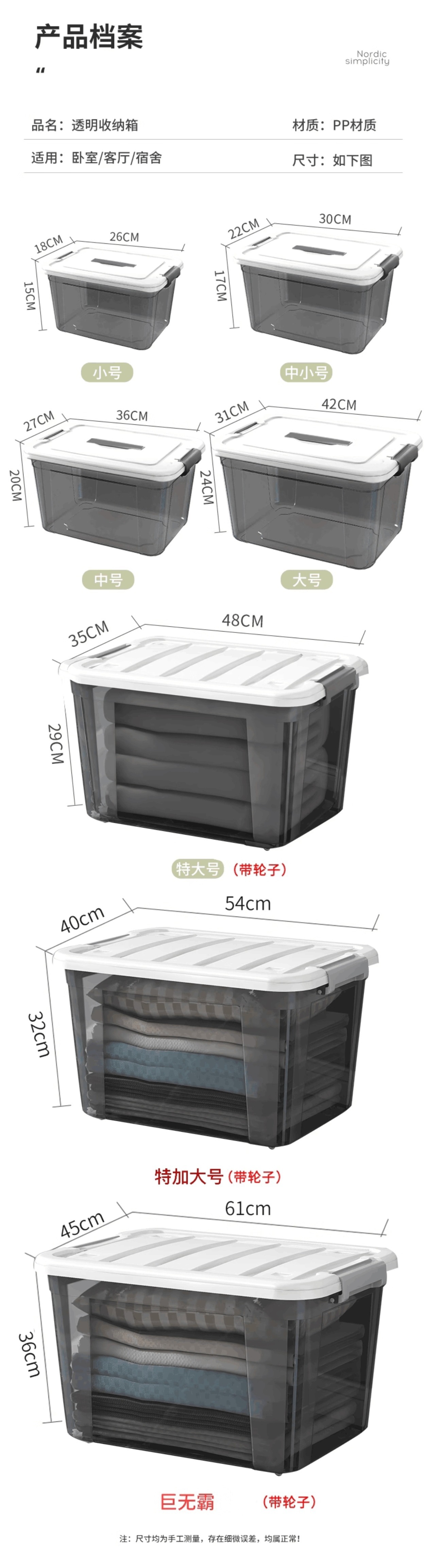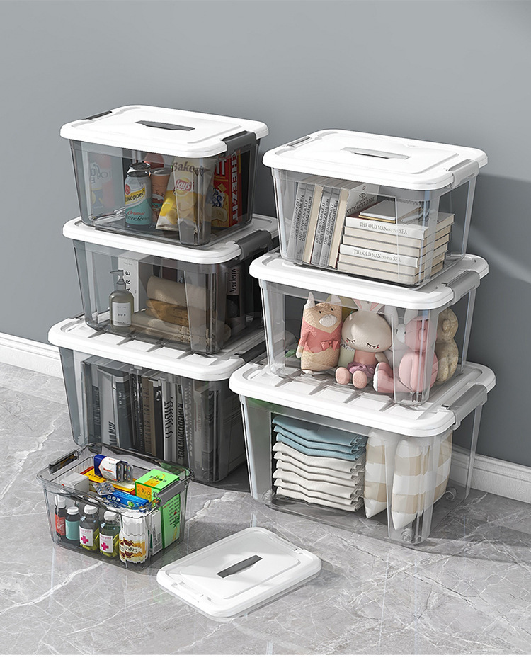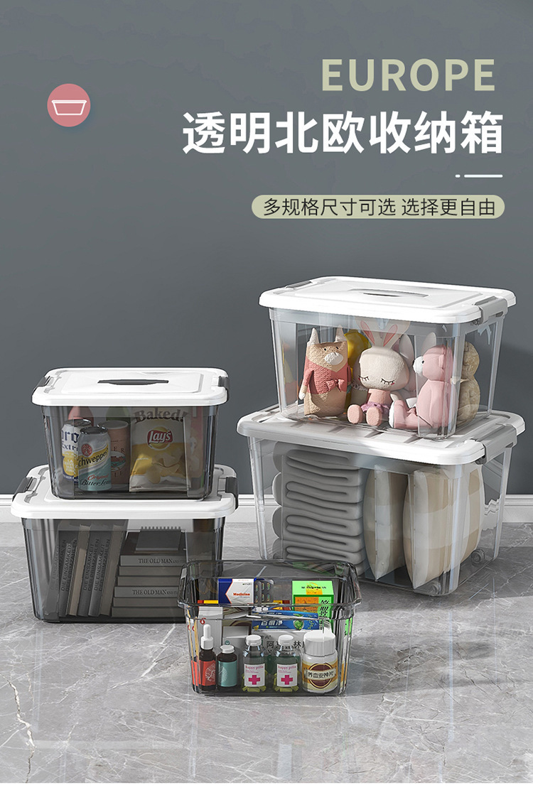 プラスチック大容量透明収納箱家庭用玩具間食整理箱赤ちゃん服収納箱ごみ箱