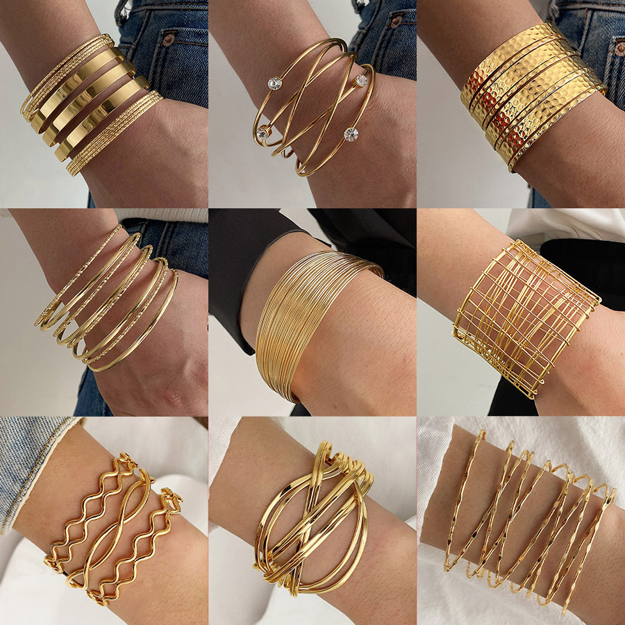 ヨーロッパとアメリカのクロスボーダーレトロシンプルなチェーンブレスレットファッションミックスアンドマッチオープンブレスレットハンドアクセサリースタッキングスタイルの組み合わせ卸売