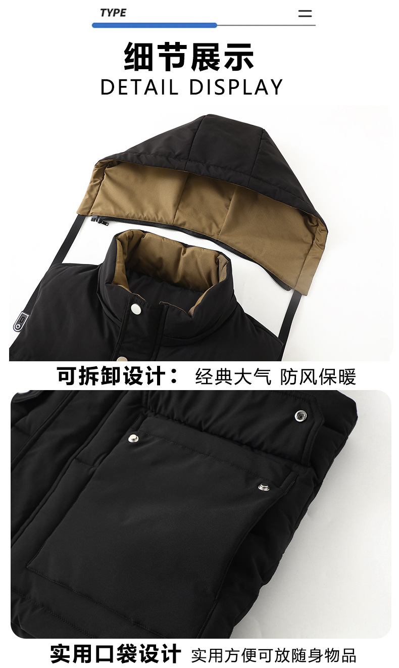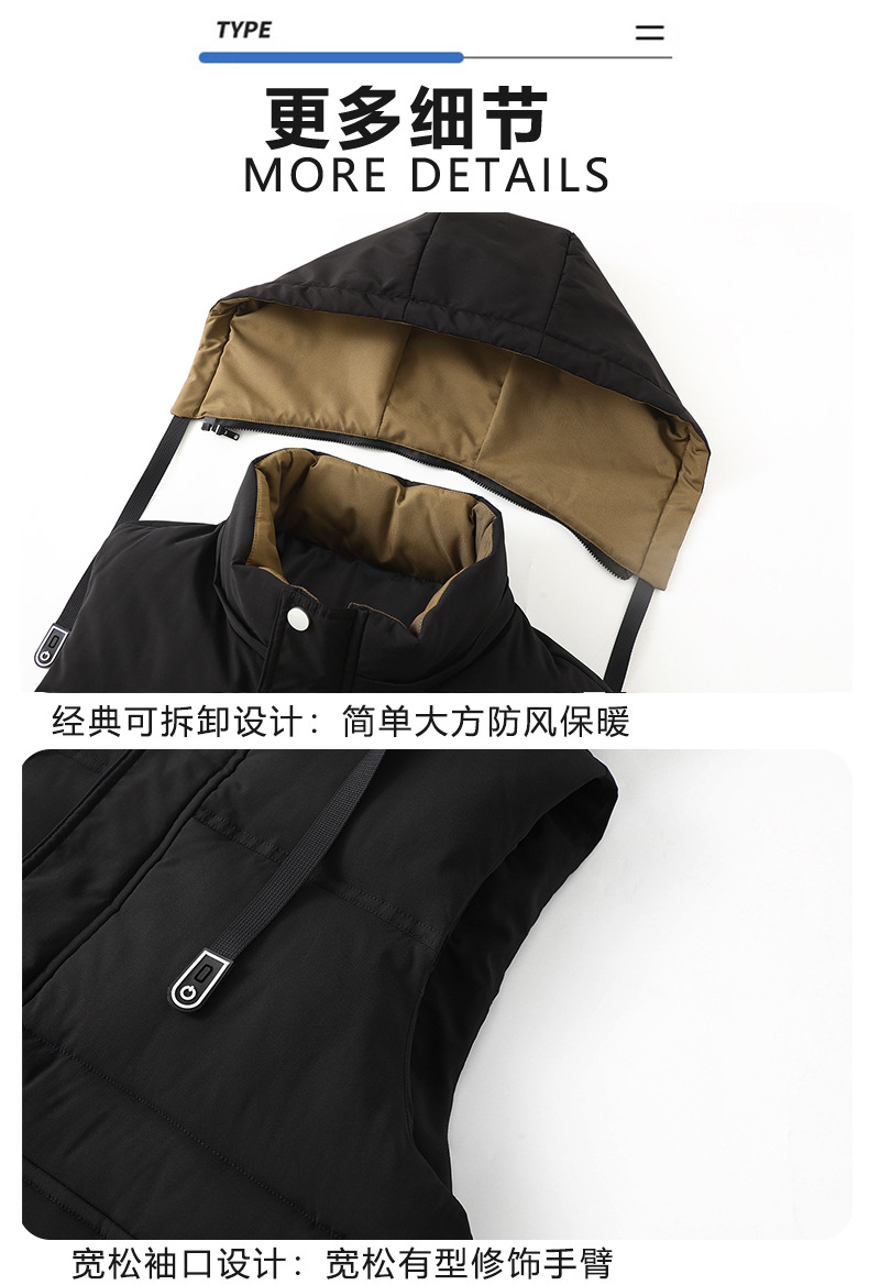 棉马甲男冬季男装新款可拆卸帽棉坎肩棉背心工作服班服印字印LOGO