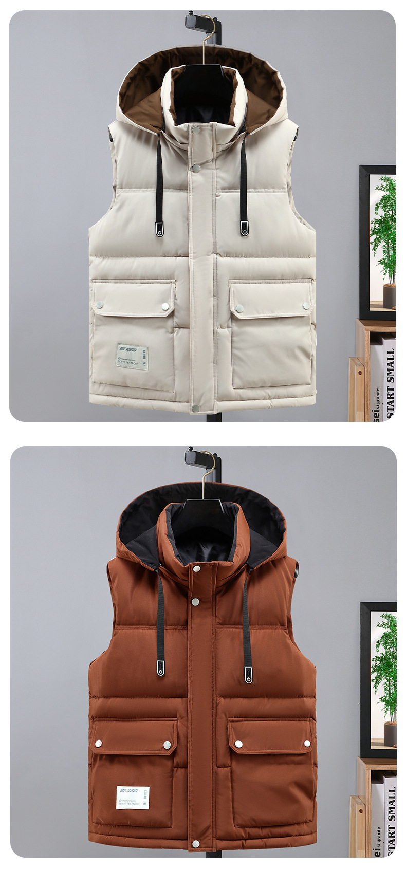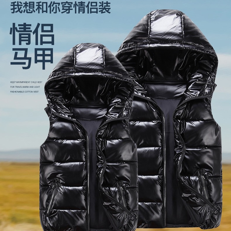秋冬新作の外国貿易向けコート、メンズ綿ベスト、厚手、カップル向け、取り外し可能なフード付き綿ベスト、レディース作業着綿ベスト