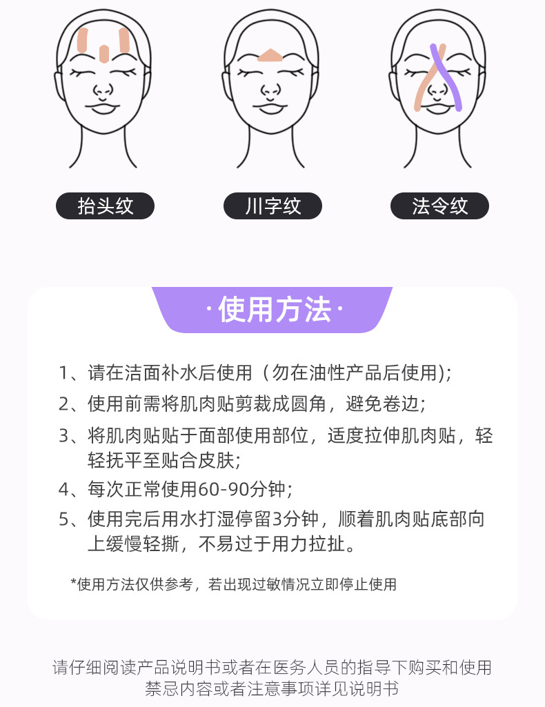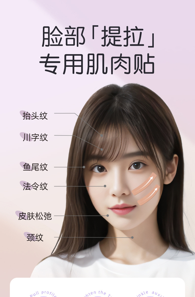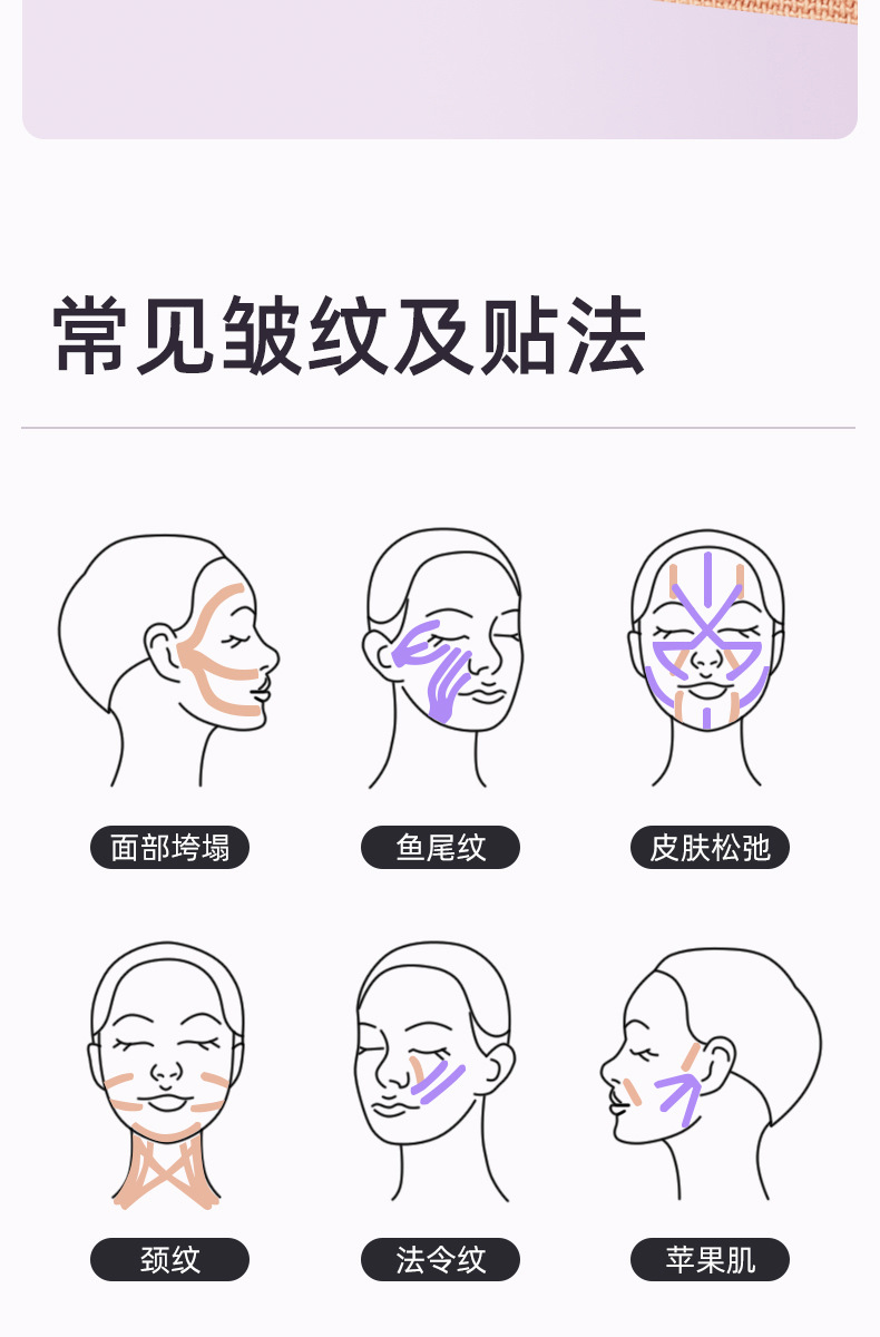 見上げた川の字の紋様の専用のテープの筋肉は顔の顔の法律の紋様を貼って美容の跡がなくて弾力の包帯を貼ります。