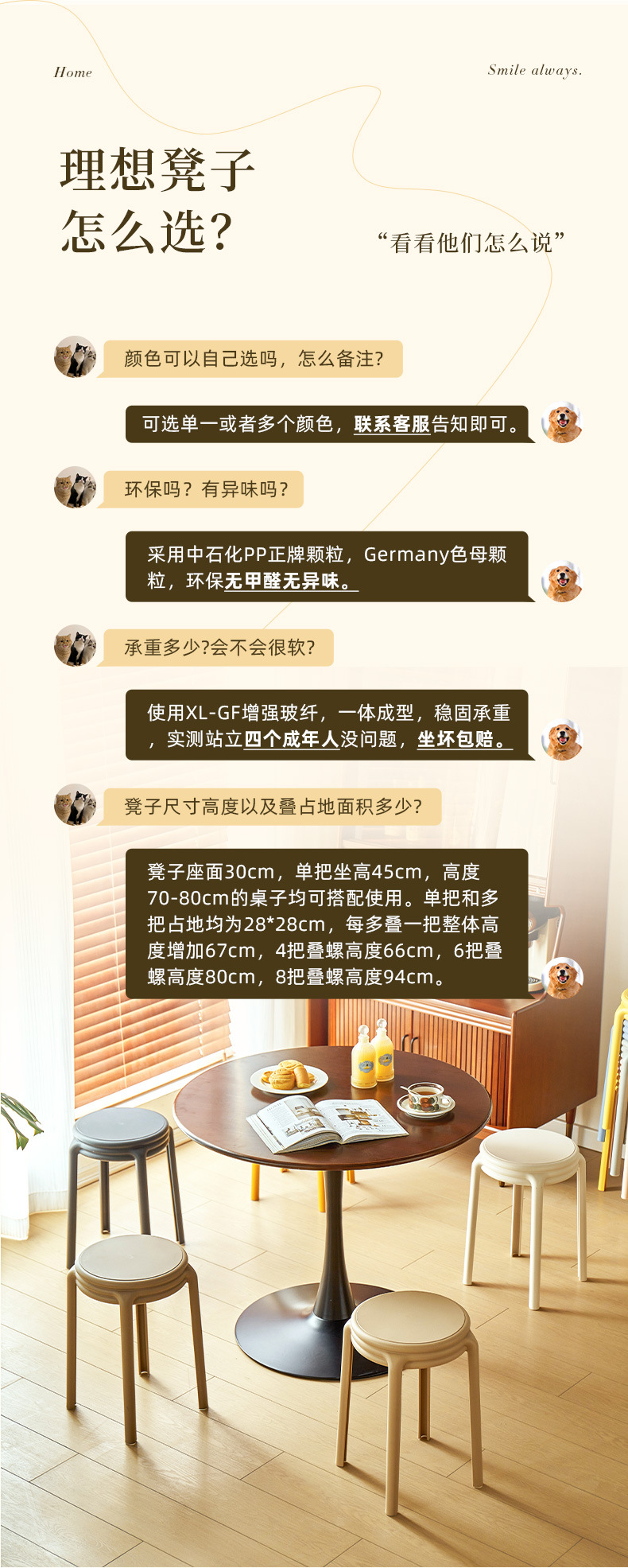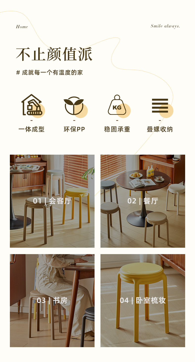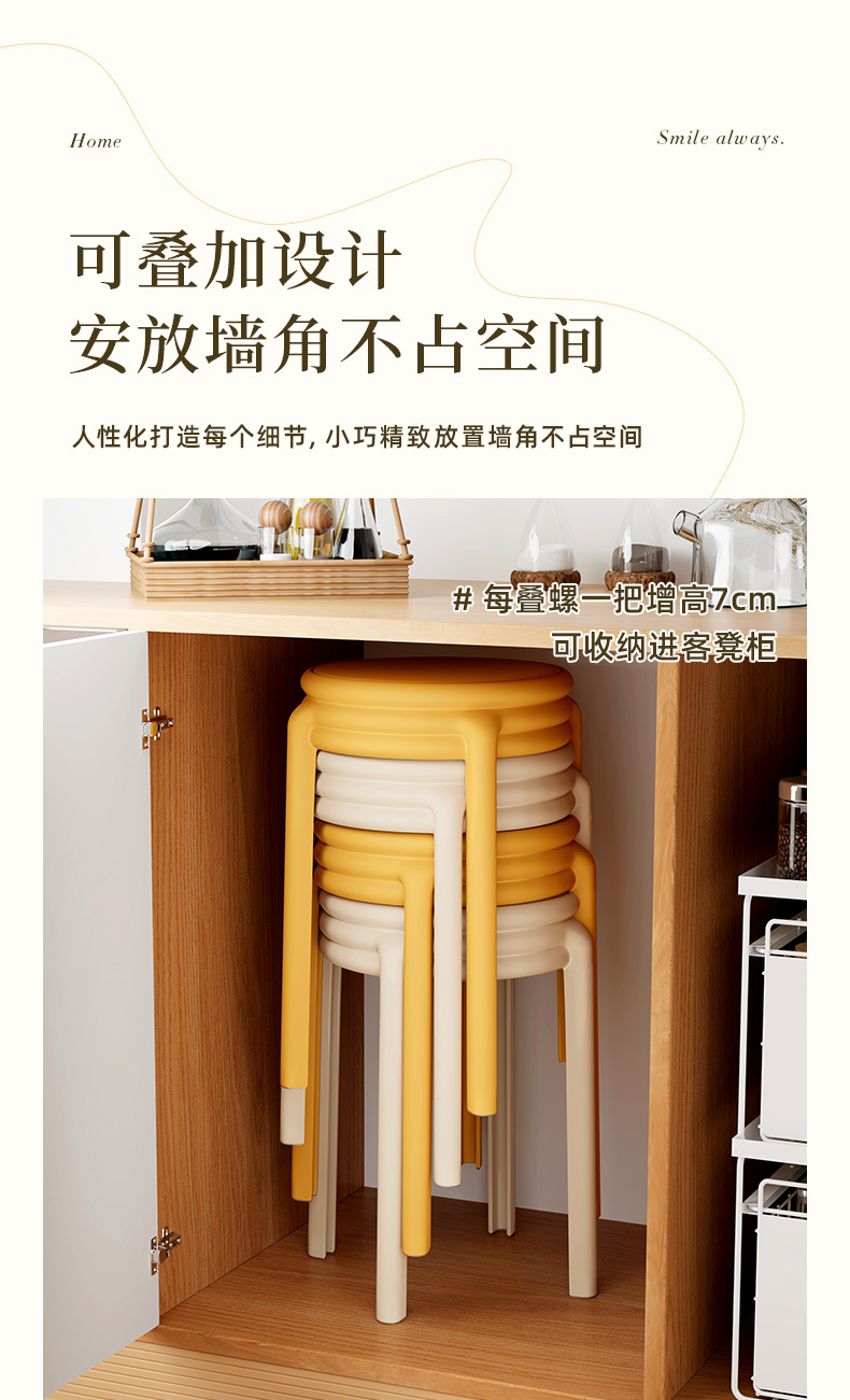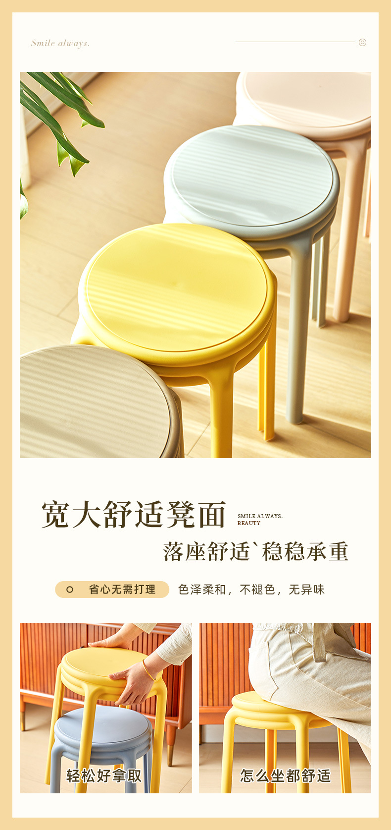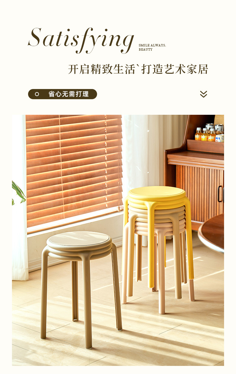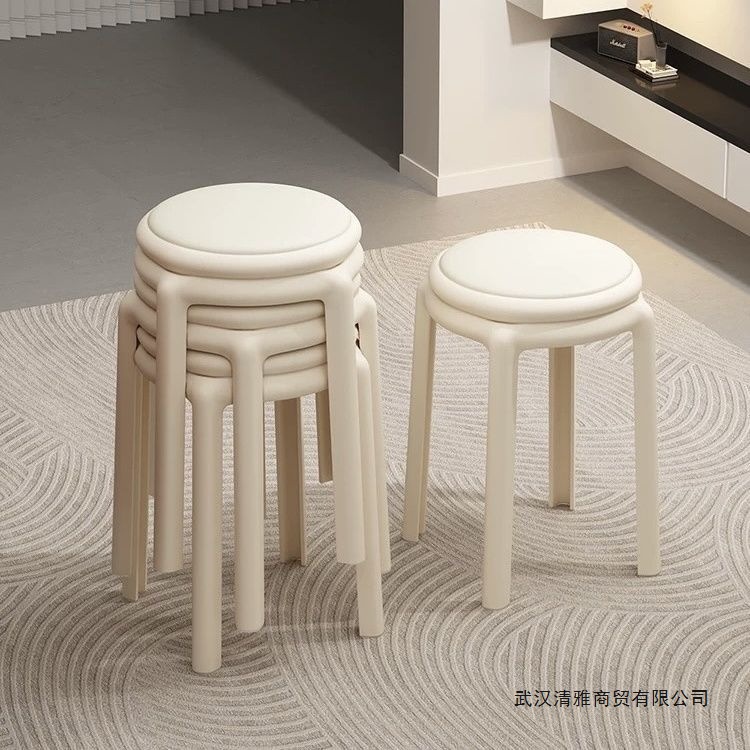 北欧塑料凳子可叠放凳子现代简约家用客厅餐厅圆凳子等位软包凳子