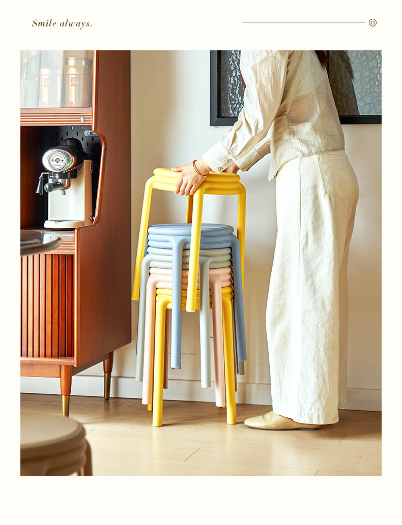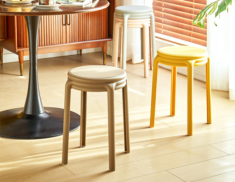 家庭用ソフトパッケージスツール積み重ね可能なレストランダイニングスツールモダンなシンプルなハイスツールリビングルームレジャープラスチックラウンドスツール