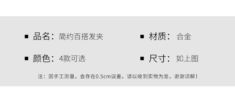 ヘアクリップ一字クリップシンプル黒ヘアクリップ小髪クリップ固定髪飾り女性スチールクリップu型クリップ