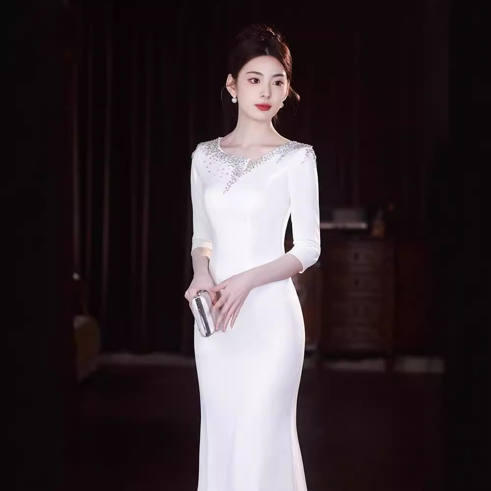 宴会司会者向けイブニングドレス 2025年秋トレンド ウェディングドレス 大型フィッシュテールパフォーマンスドレス ハイウエスト着痩せドレス