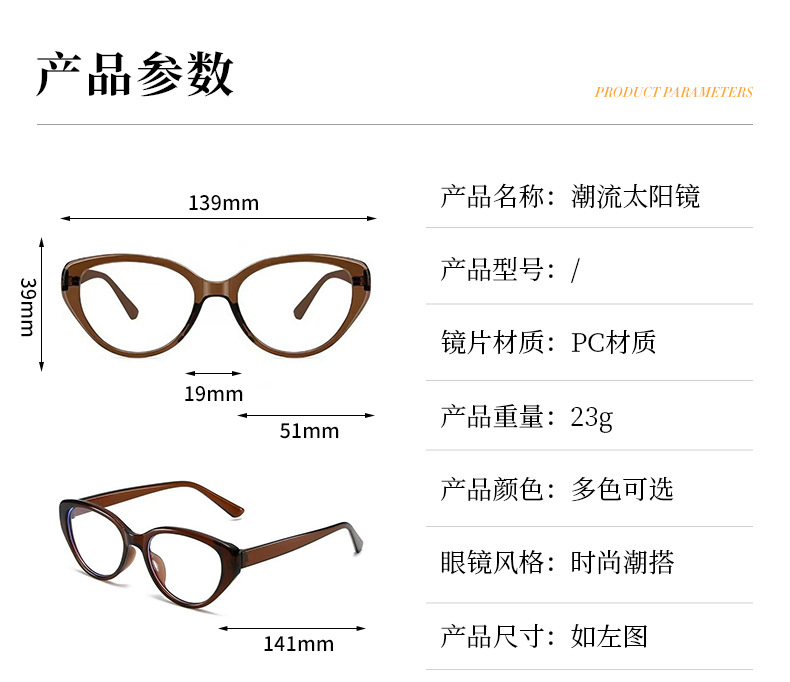 复古高级猫眼防蓝光美拉德方圆脸显瘦素颜框架平光眼镜百搭个性