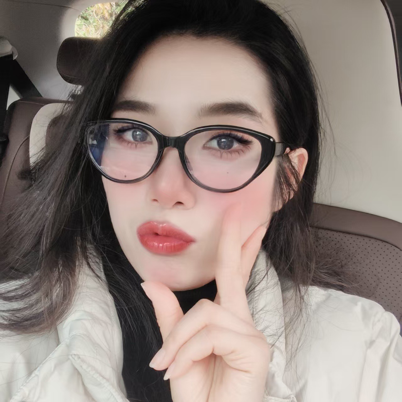 女性用キャットアイメガネフレーム、フラットミラー、ファッショナブルで若々しい、高精細抗ブルーライト完成近視メガネ、Douyinライブブロードキャスト