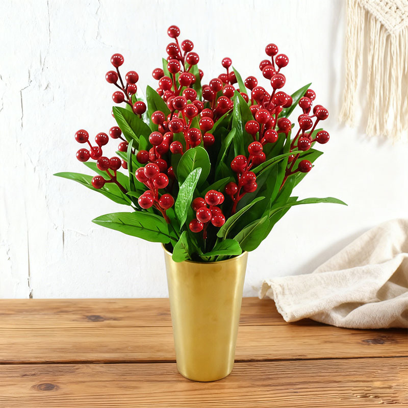 卸売模擬 5 ヘッドレッドフルーツクリスマスフルーツハンドル束 PVC フォームフルーツフォーチュンフルーツ縁起の良いフルーツ造花装飾小道具
