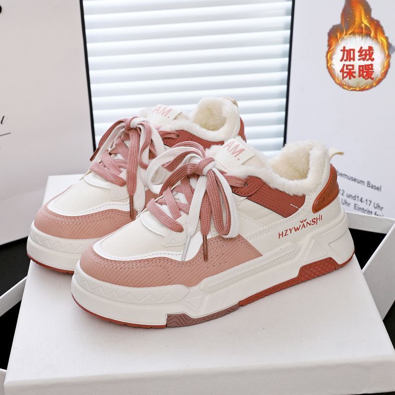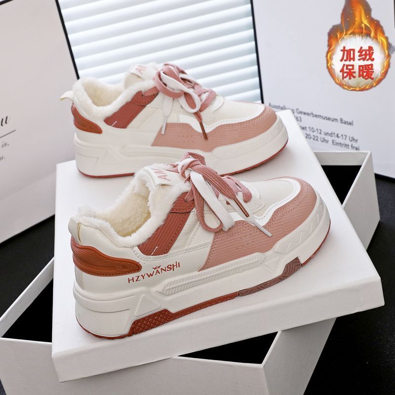 踩屎感女鞋加绒小白鞋女2025新款秋冬季保暖棉鞋时尚休闲运动板鞋