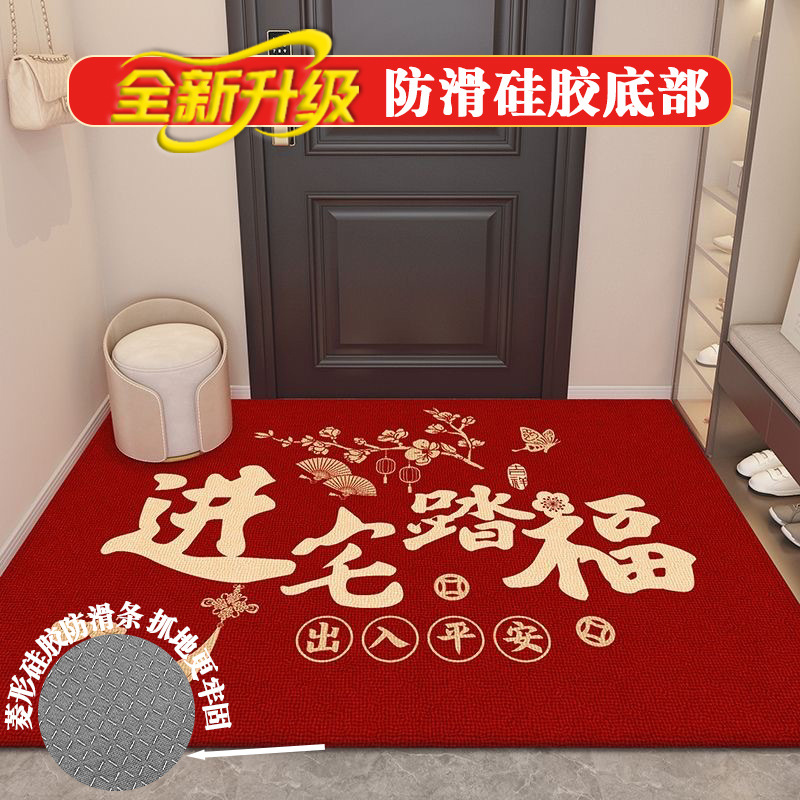 2026年クリスタルベルベット玄関マット、新築祝いマット、家庭用玄関カーペット、新年用マット、赤い玄関マット