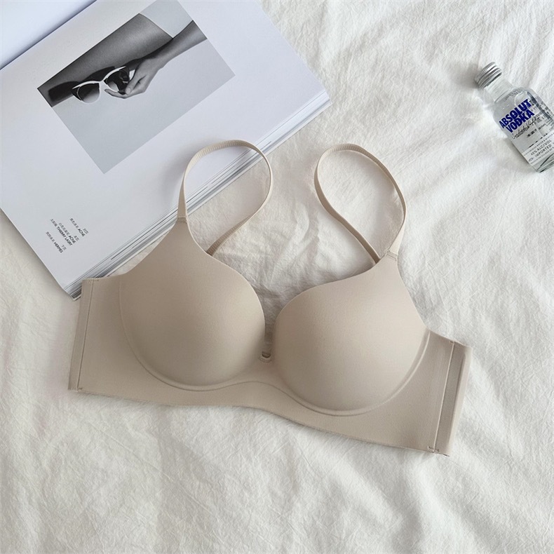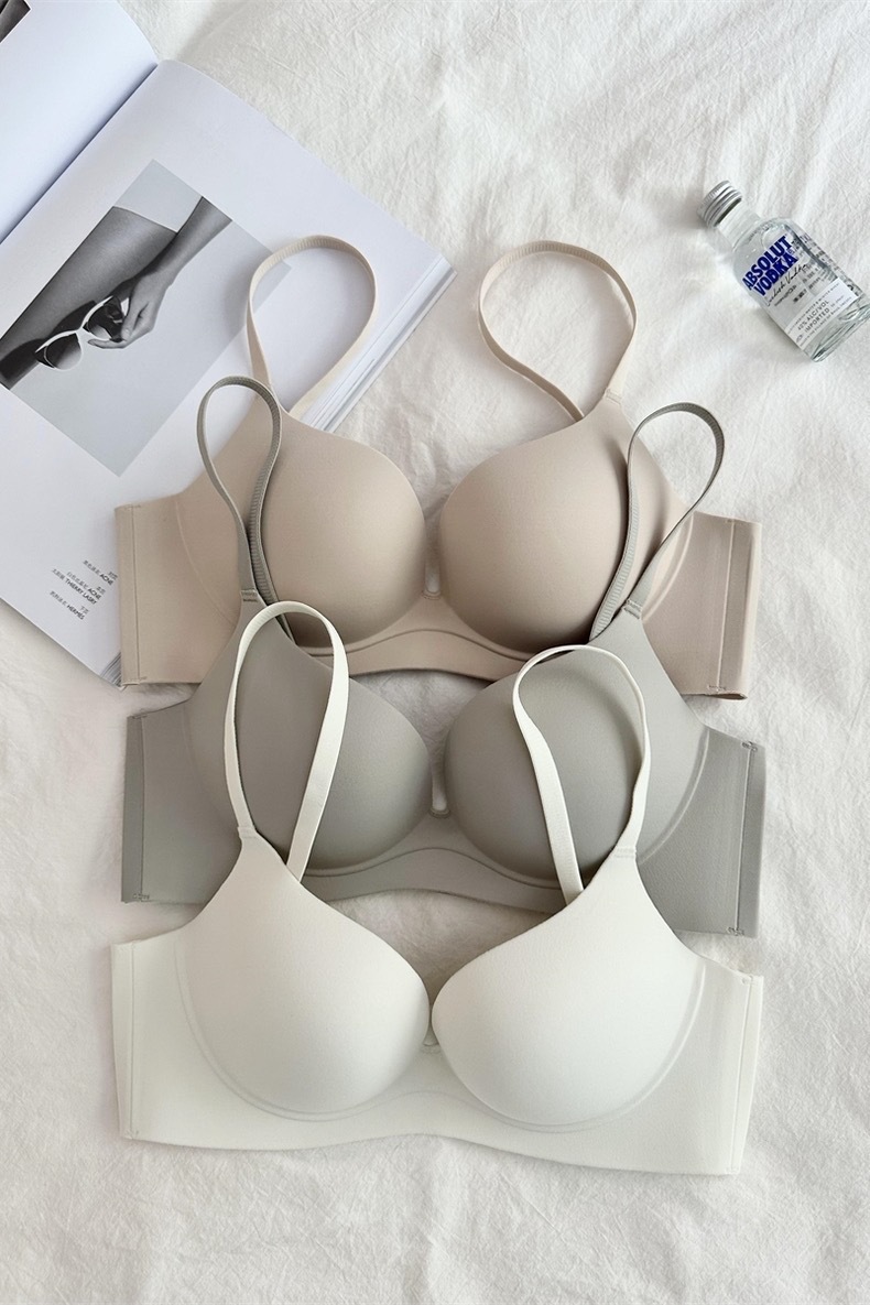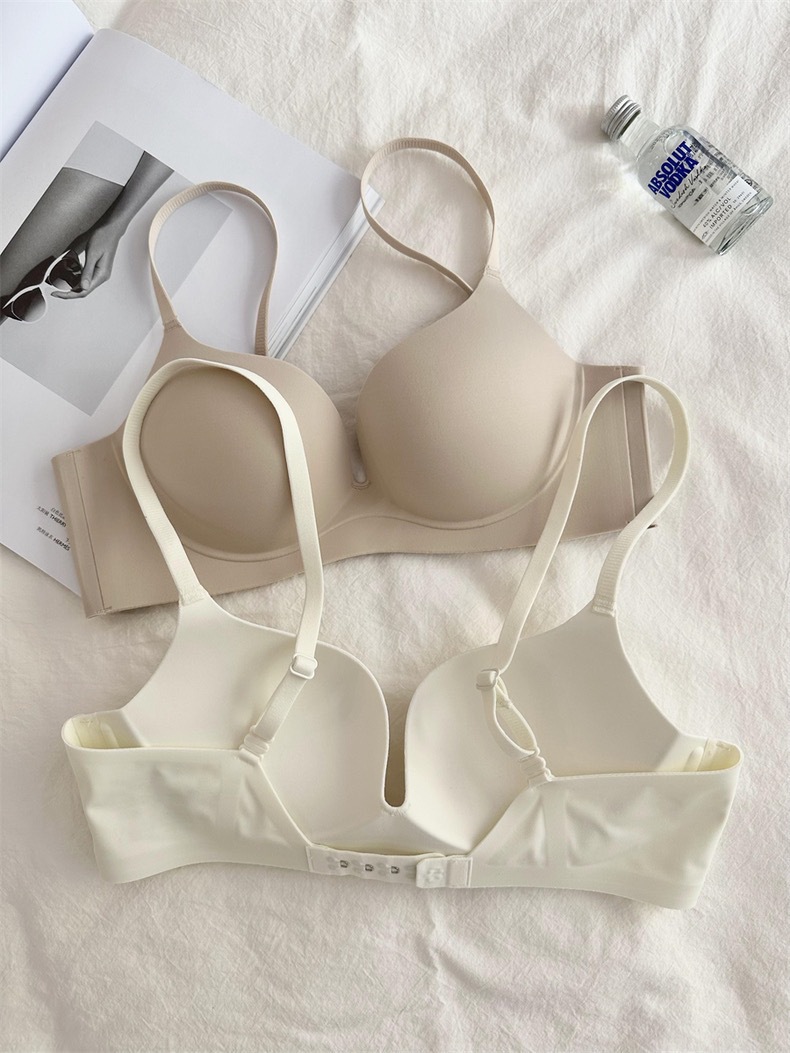 本物のシームレスワンピース美背ブラジャー、小胸を大きく見せる厚手ブラ、脇の肉を隠すノンワイヤーブラジャー