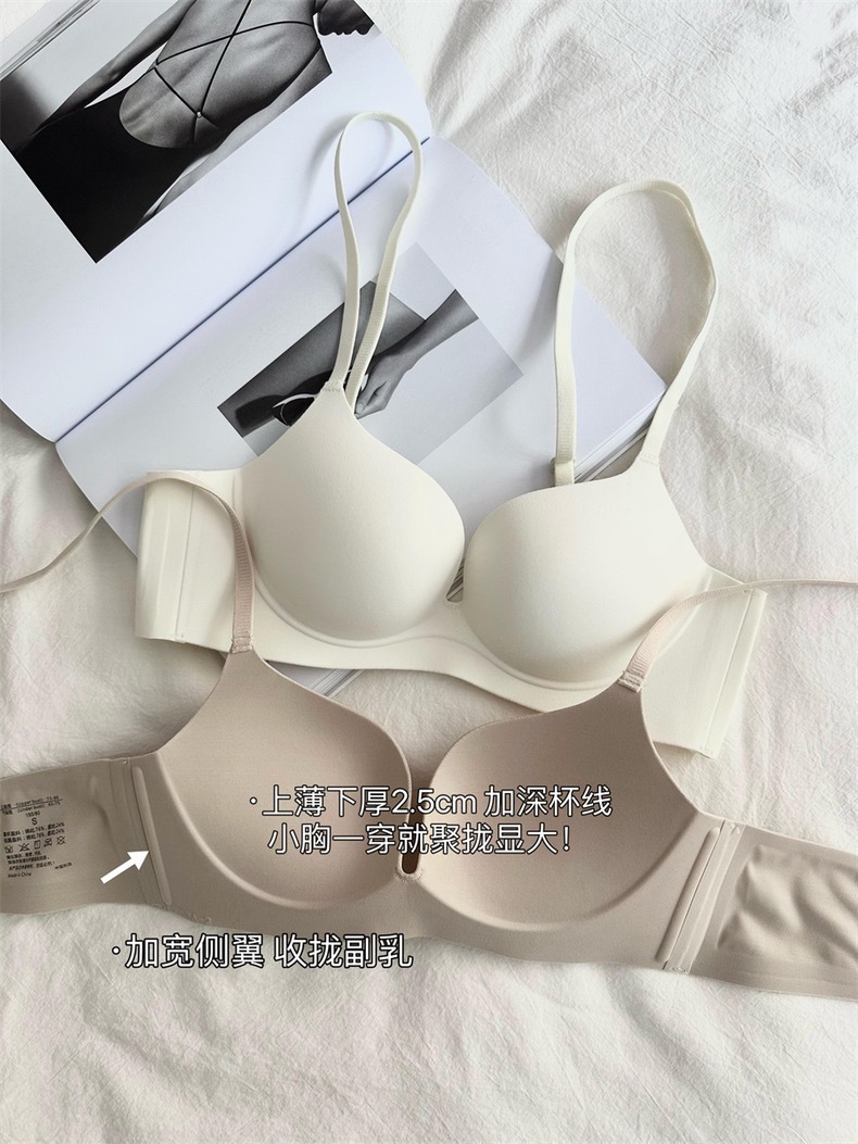 “小聚蛋”无痕内衣一片式大U美背小胸显大聚拢无钢圈文胸2.5厘米