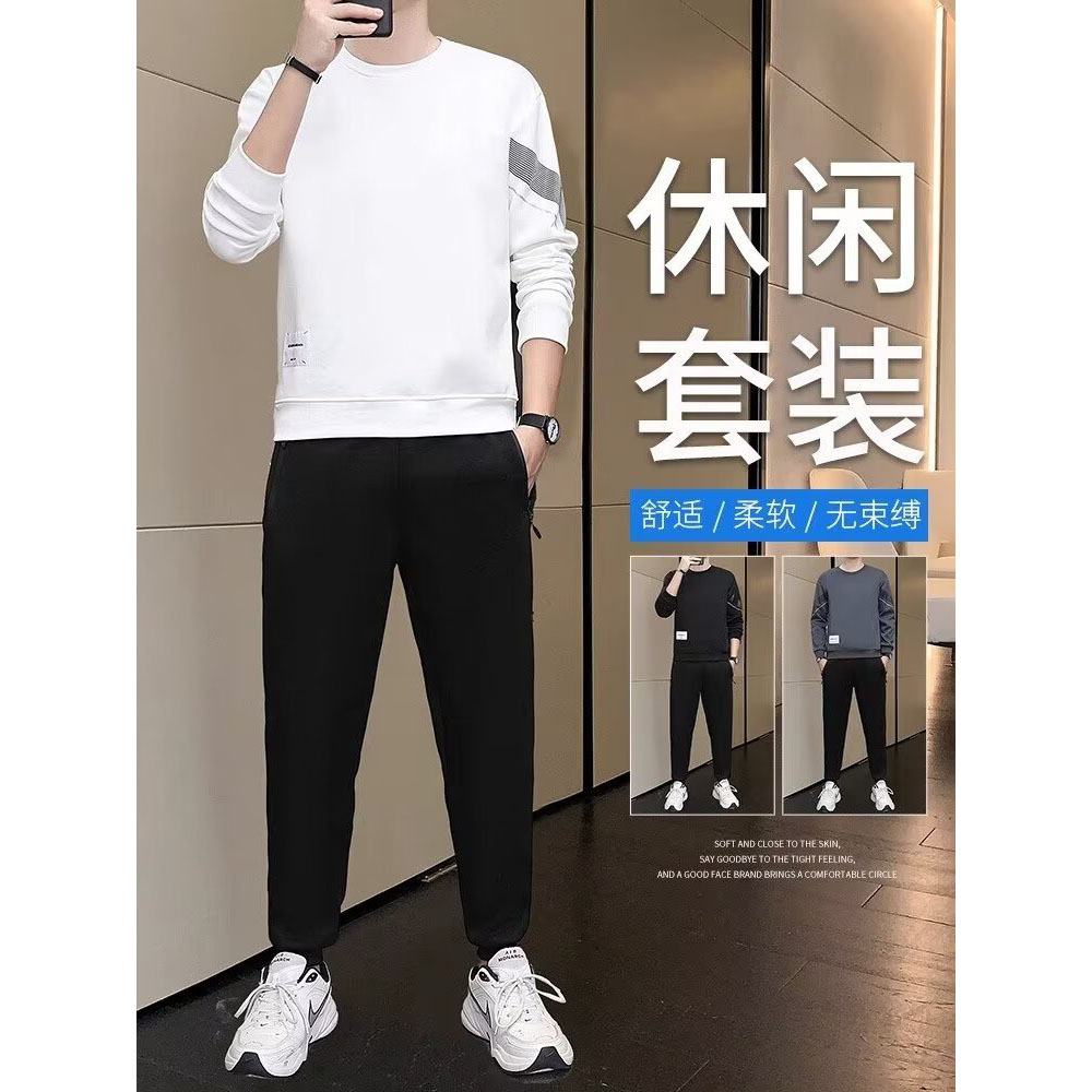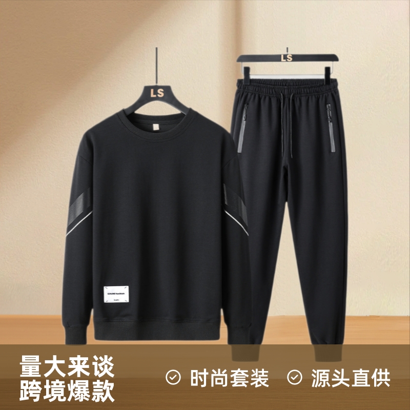 クロスボーダー専用の新型スーツ男性春秋ゆったり衛ズボンシンプルなスポーツ丸首衛衣ファッションカジュアルズボンセット