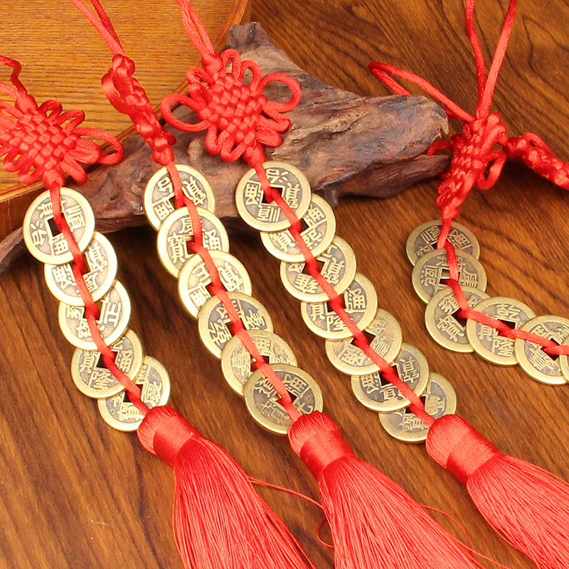 黄铜五帝钱门对门电梯口卫生间厨房卧室摆放中国十帝钱流苏葫芦