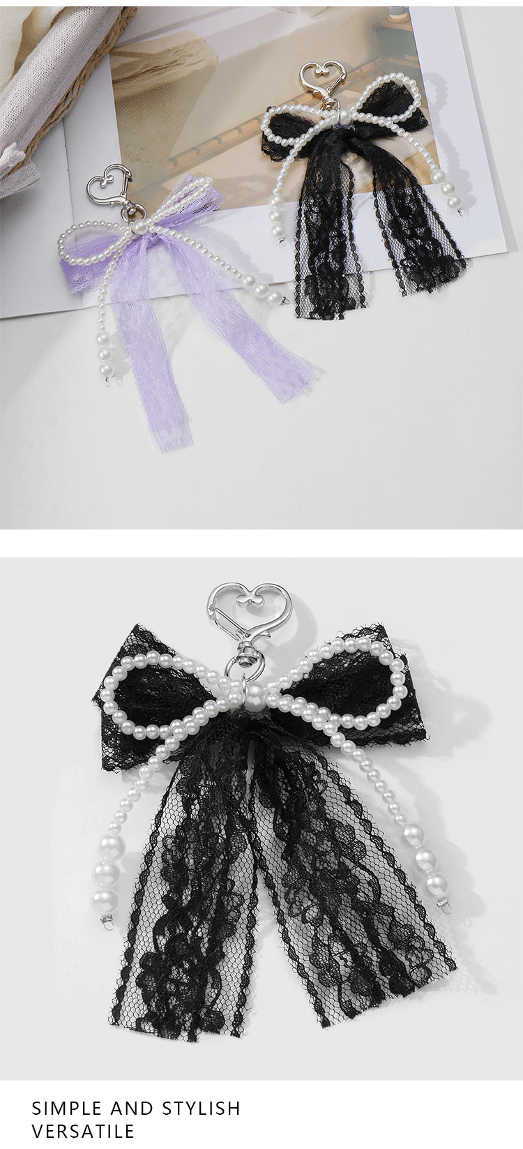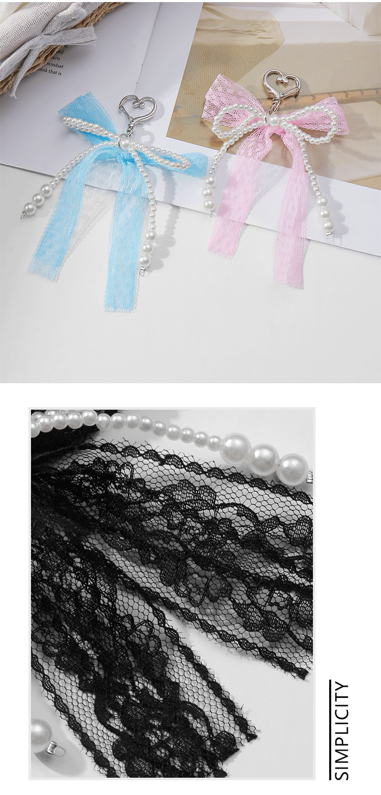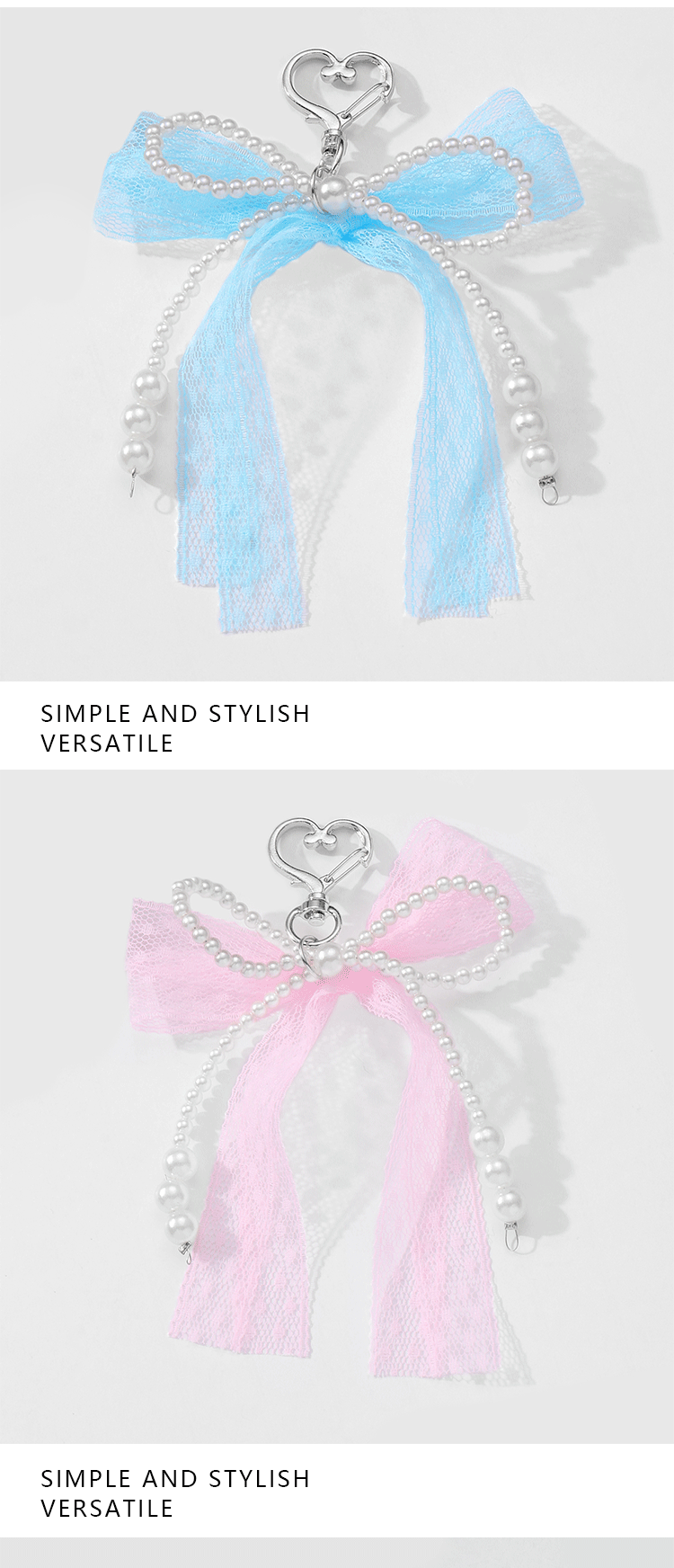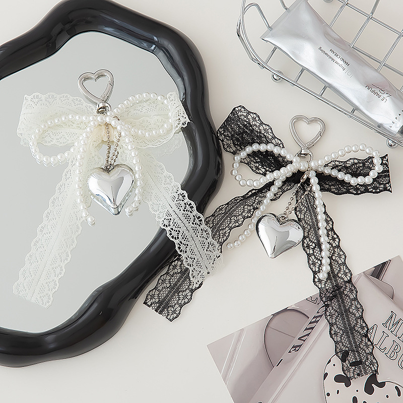 韩系蕾丝蝴蝶结包包挂件串珠珍珠蝴蝶结饰品配饰ins风爱心钥匙扣
