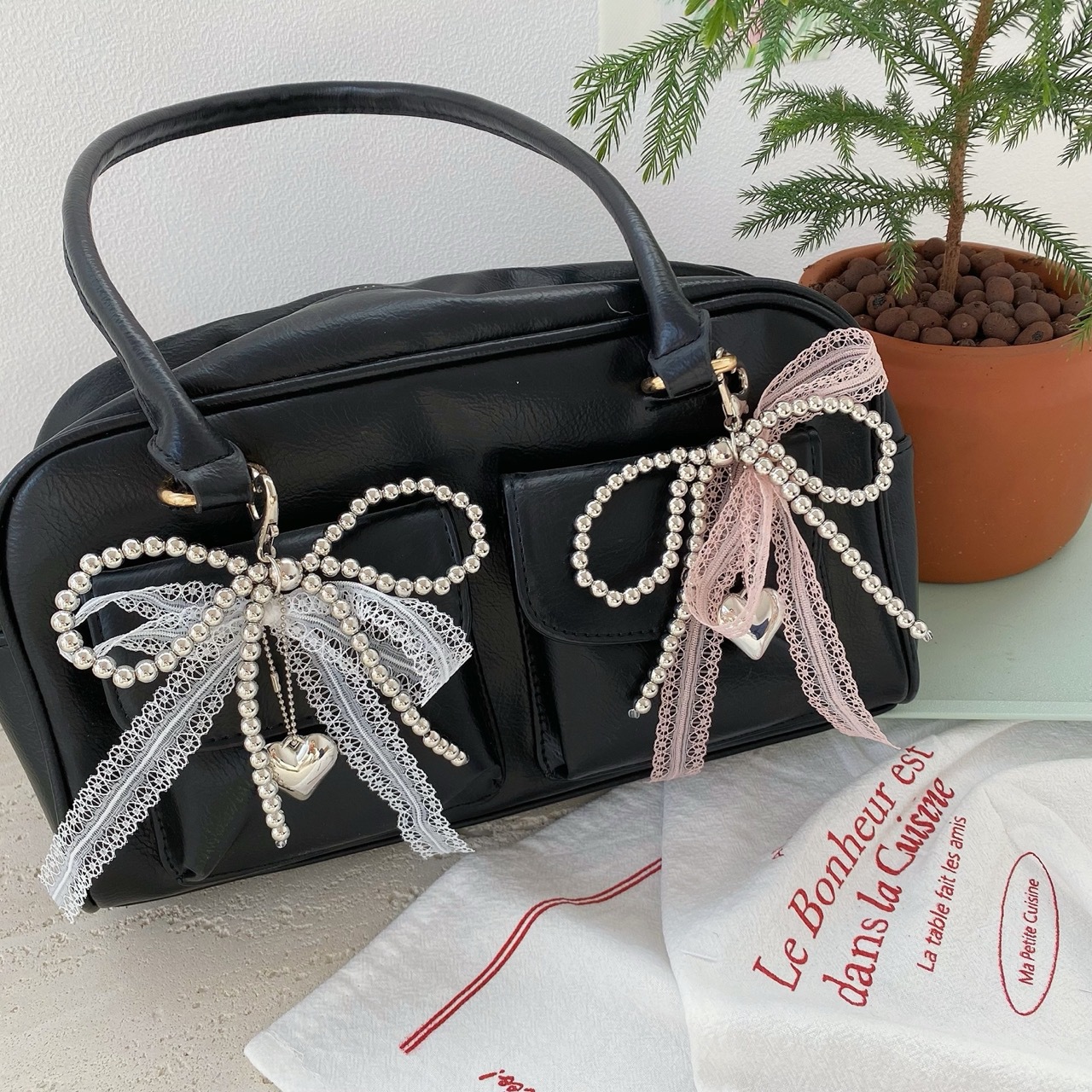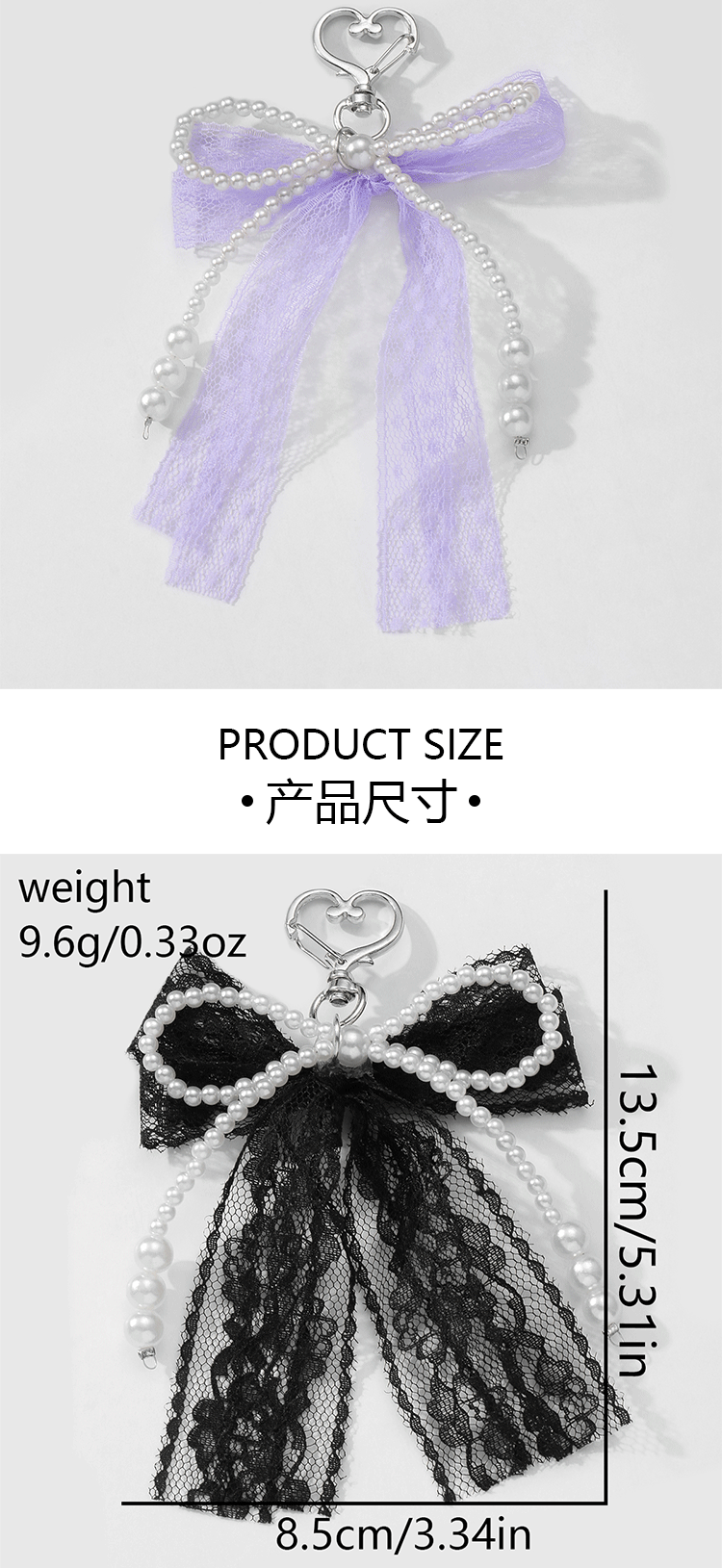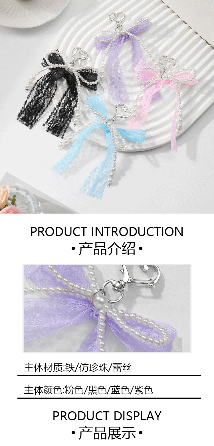 韩系蕾丝蝴蝶结包包挂件串珠珍珠蝴蝶结饰品配饰ins风爱心钥匙扣