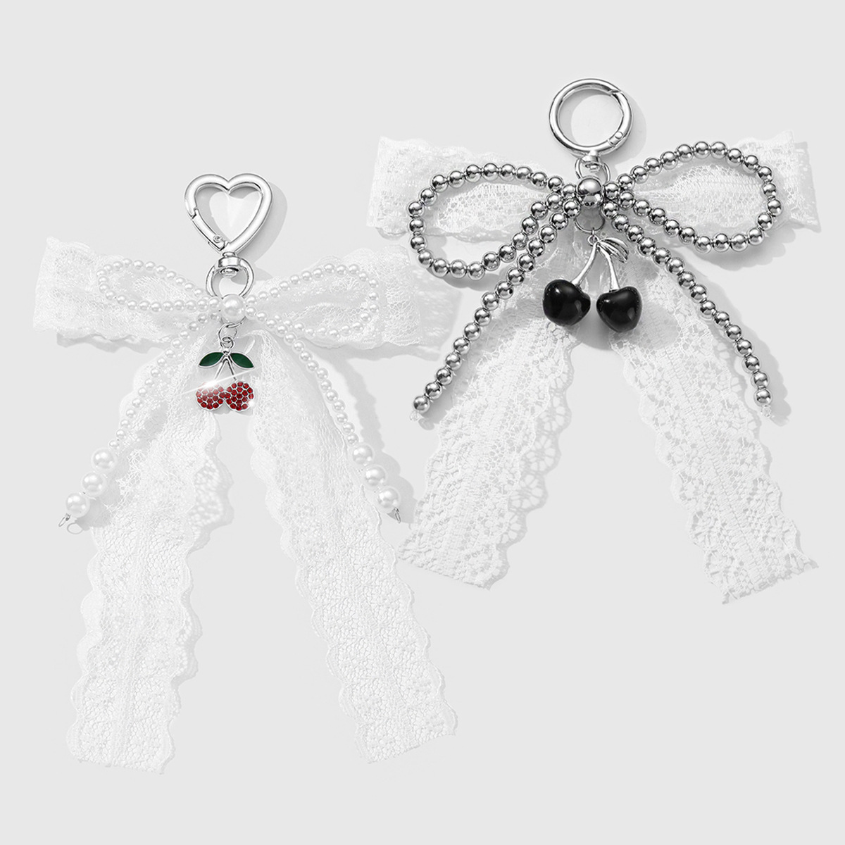 新款ins百搭精致时尚仿珍珠CCB串珠蕾丝花边蝴蝶结樱桃DIY钥匙扣
