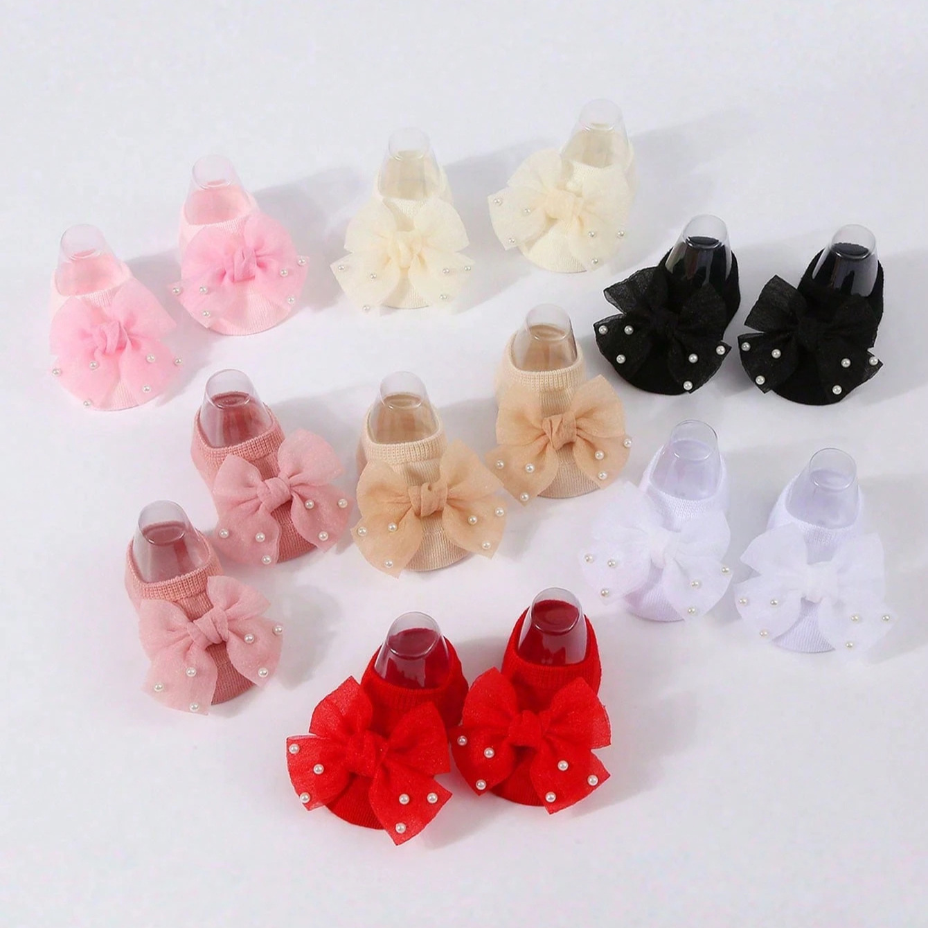 软萌蝴蝶结婴儿袜鞋 新生宝宝可爱防滑地板袜 公主风学步袜