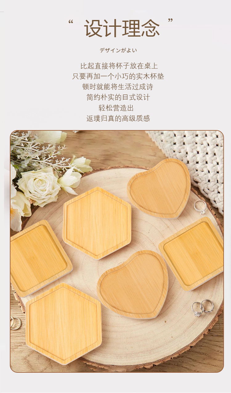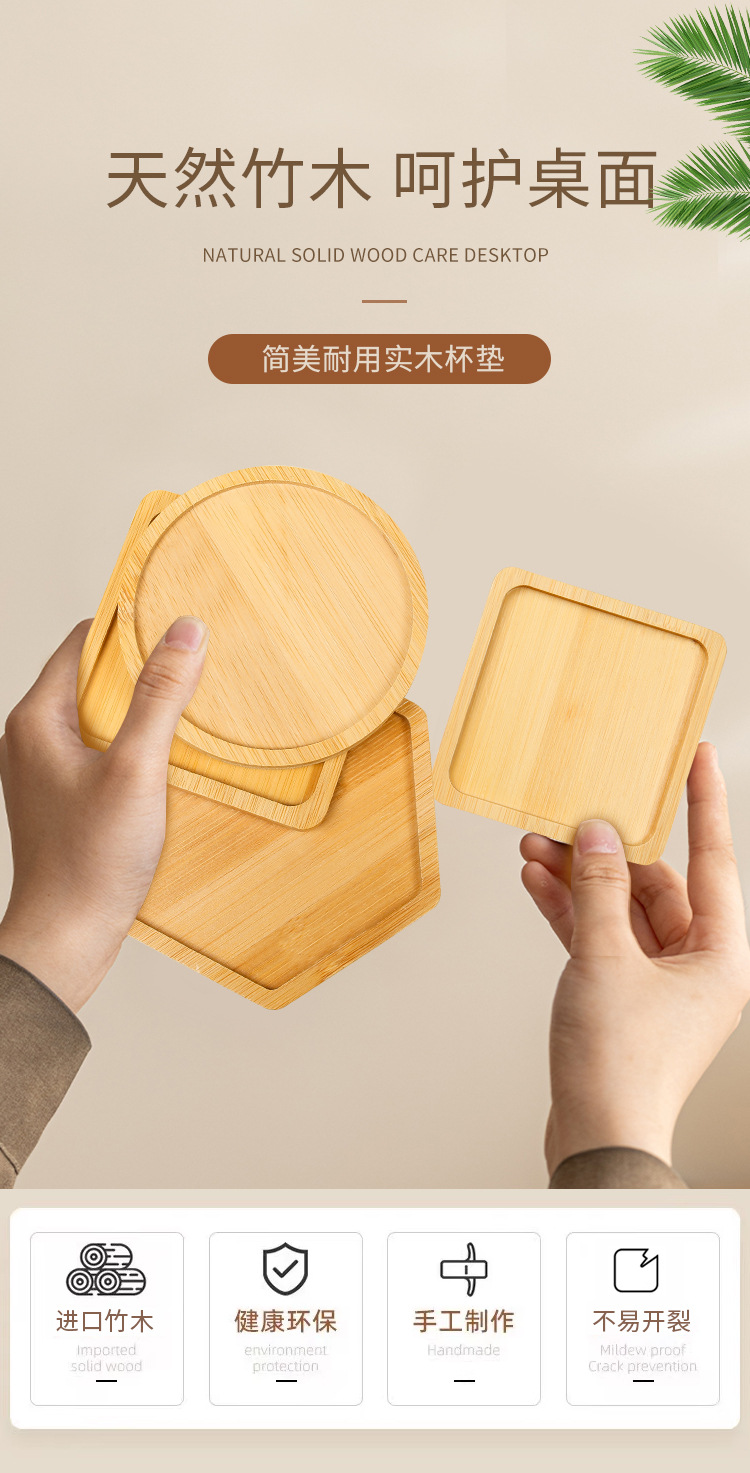 竹木制圆形异形长方形正方形多款托盘底胚多肉马赛克杯垫制做材料