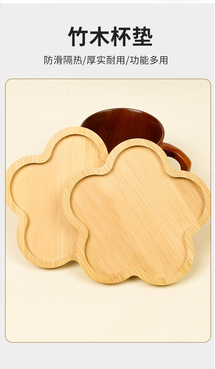天然竹杯垫托盘多肉花盆竹托点心盘通用隔热防滑竹异形多茶杯垫批
