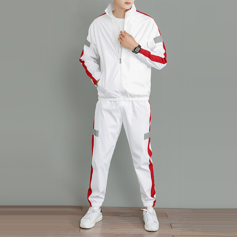 スポーツスーツの男性秋装反射ストリップセット