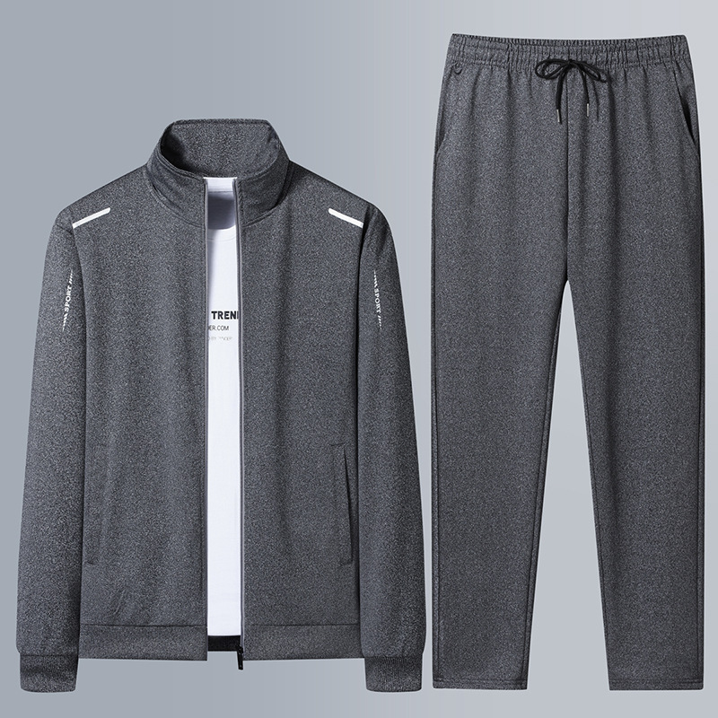クロスボーダー通気スーツ男性春秋新作カジュアルランニングフィットネス中年スポーツウェアお父さん服2点セット