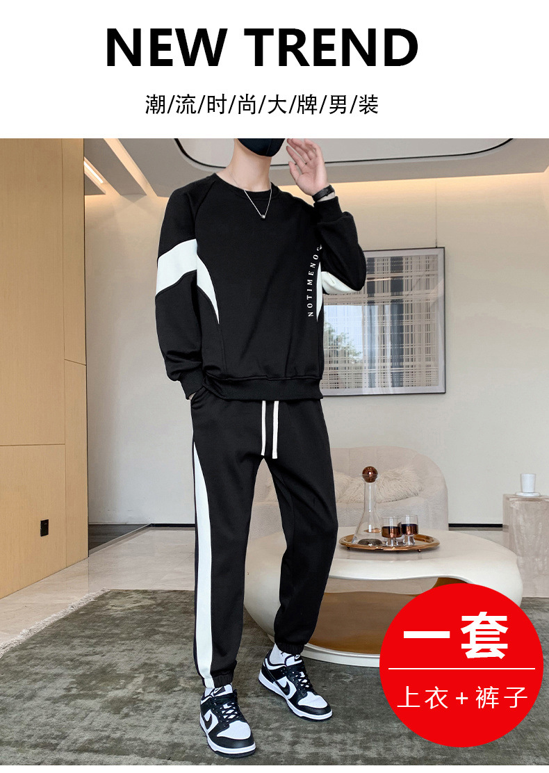 長袖Tシャツとスウェットシャツのメンズ秋服セット2025新作、男の子用服セット、カジュアルで万能な2点セット