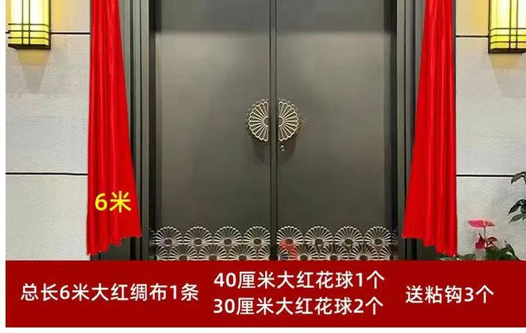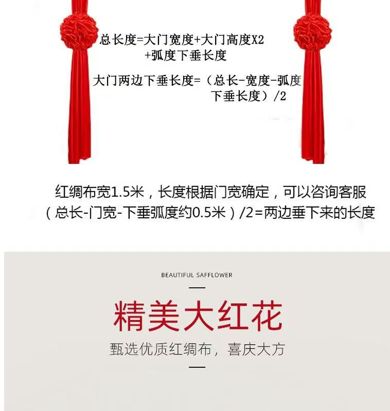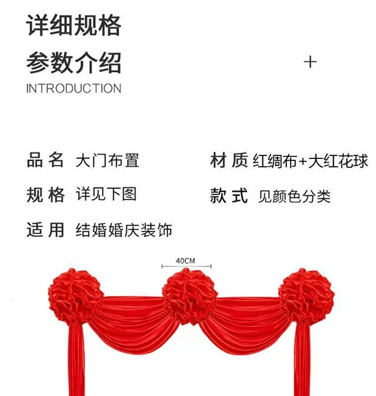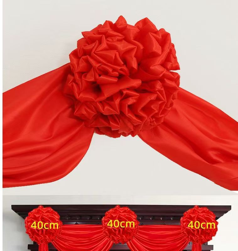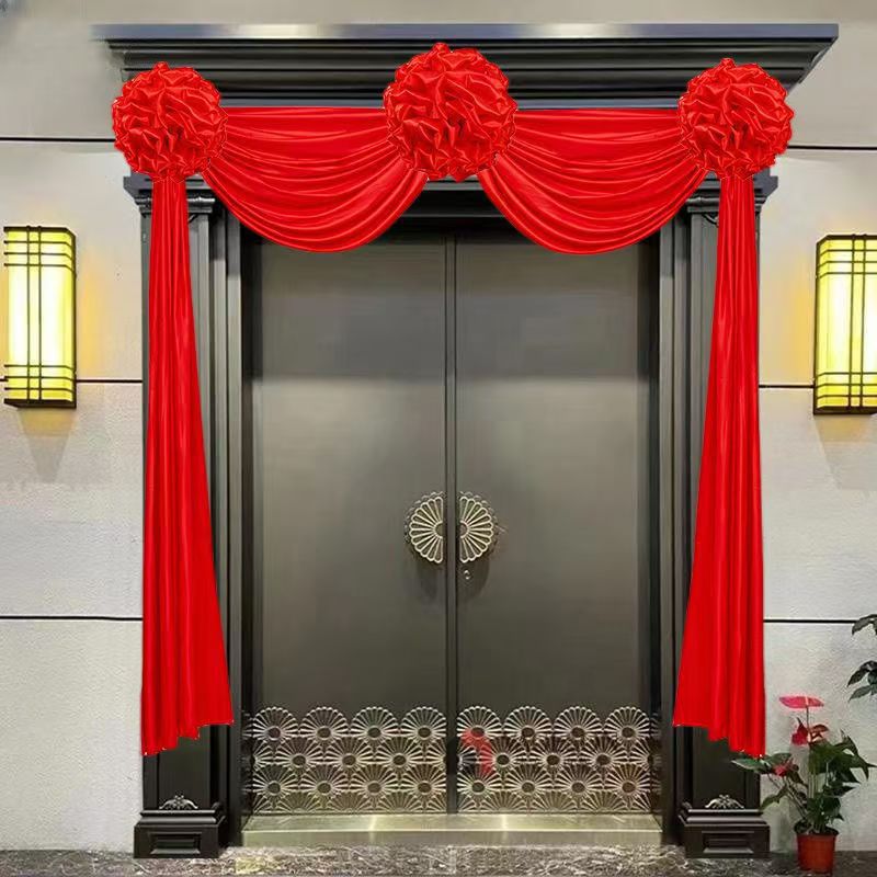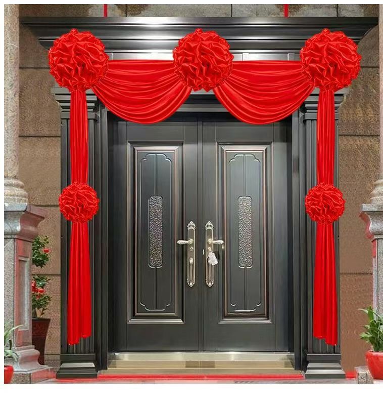 大红花绣球婚礼挂红布幔楼梯护栏阳台农村别墅乔迁门头装饰红绸布