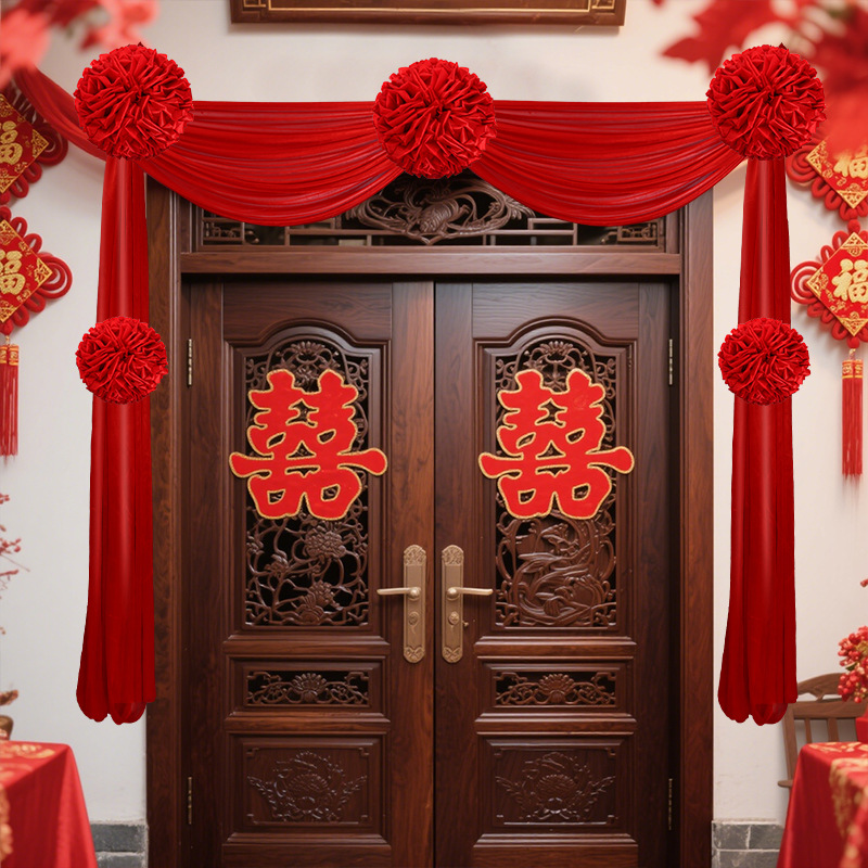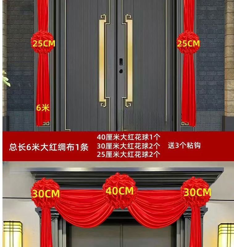 结婚单元门新房乔迁新居大红花绣球装饰农村大门院子别墅婚礼拉花