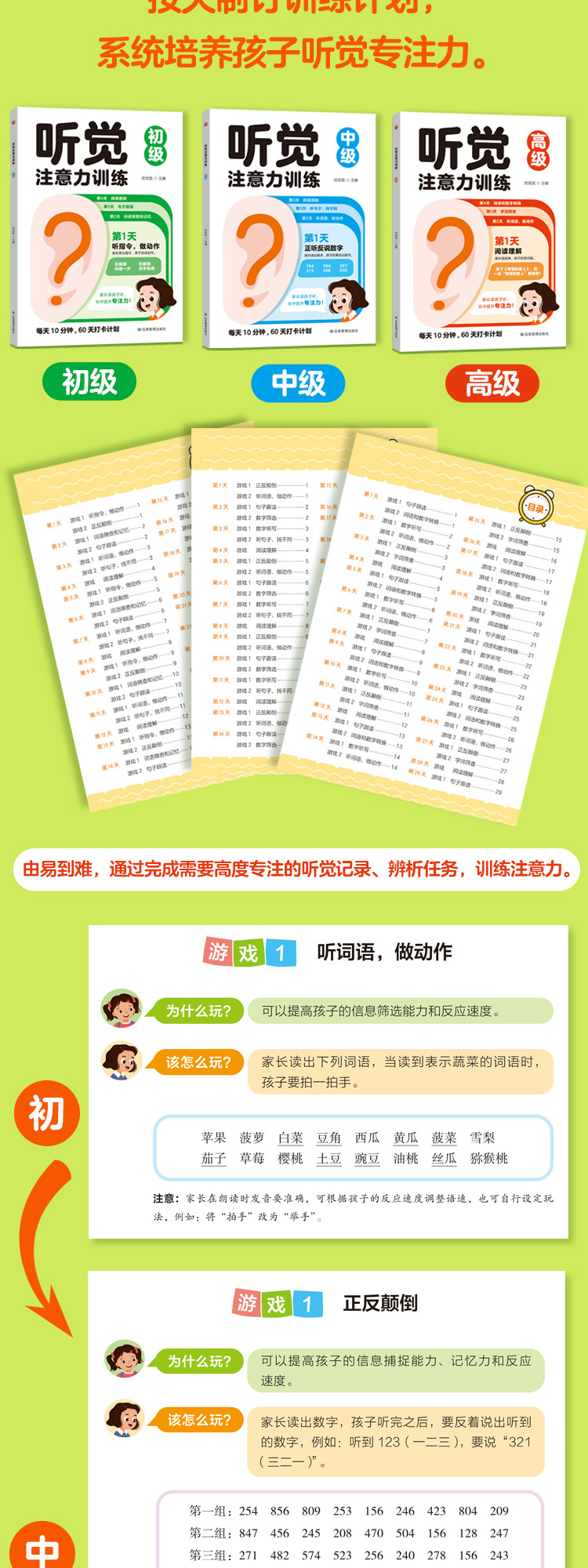 聴覚注意力トレーニング-初級中級児童知能トレーニング集中力開発ゲームブック