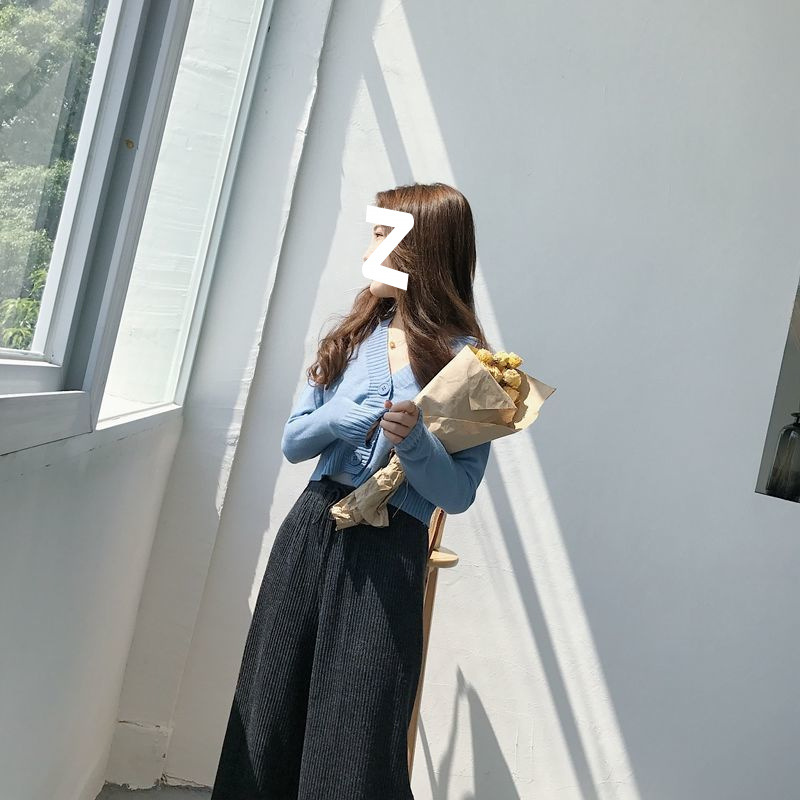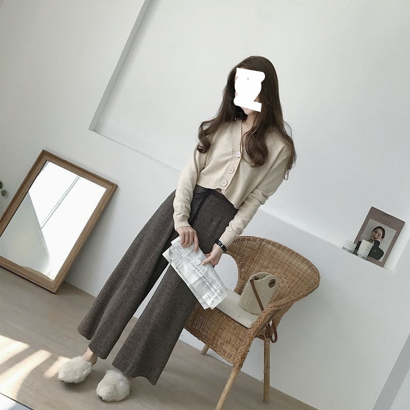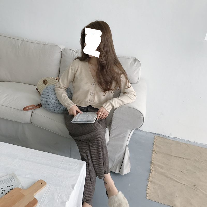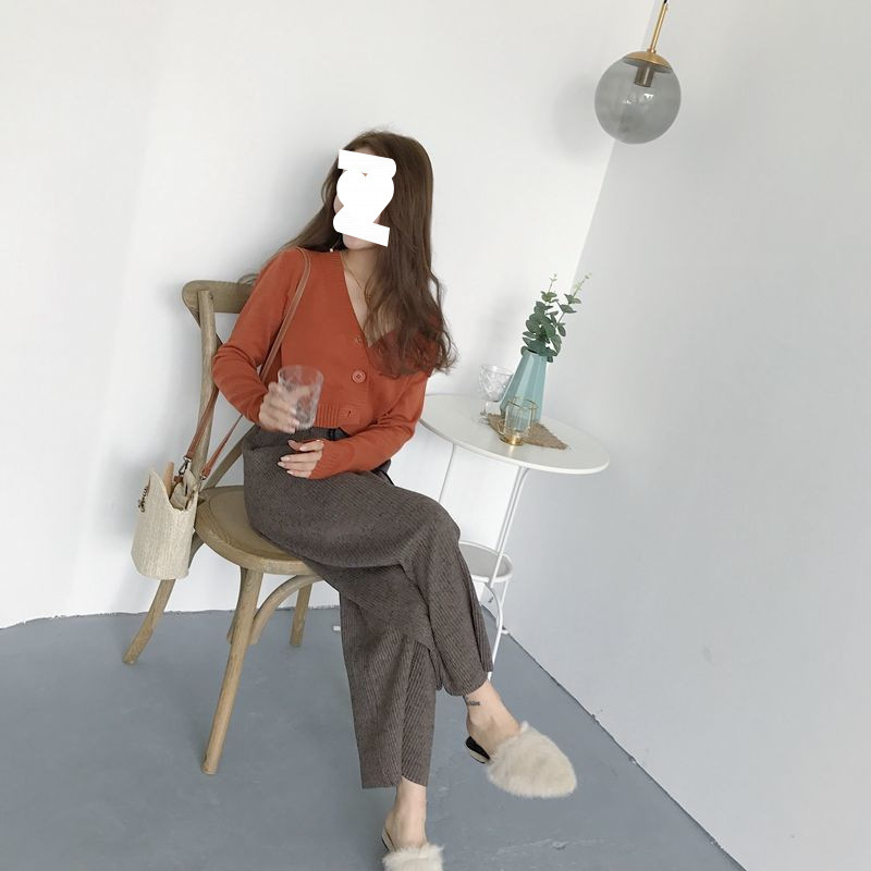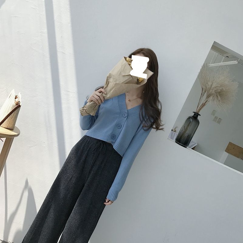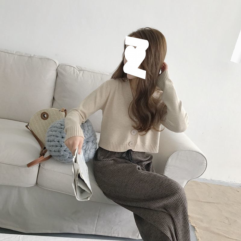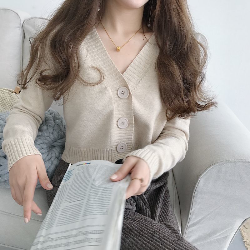 香港の味のレトロなvネックの高腰の短いニットの組み合わせの純色の修身の長袖のボタンのセーターのカーディガンのコートの女性