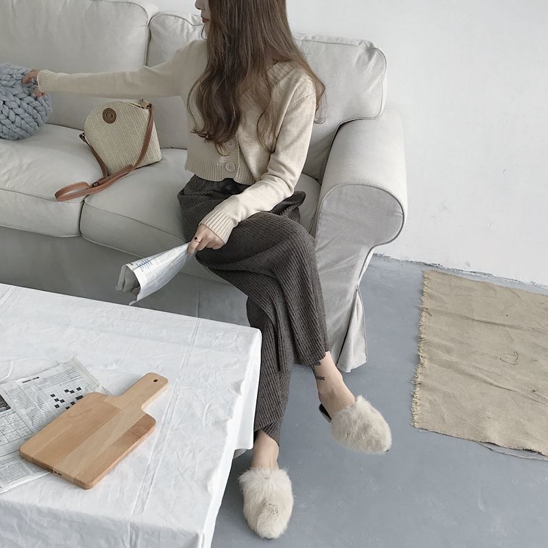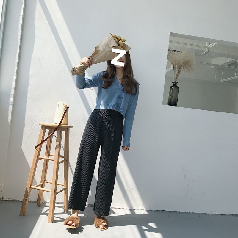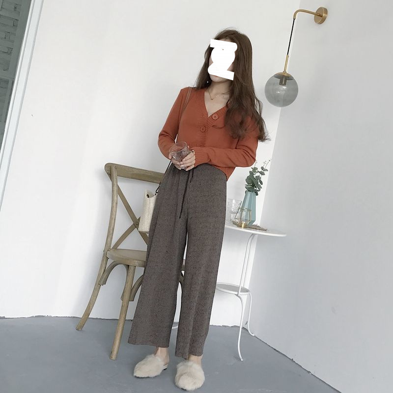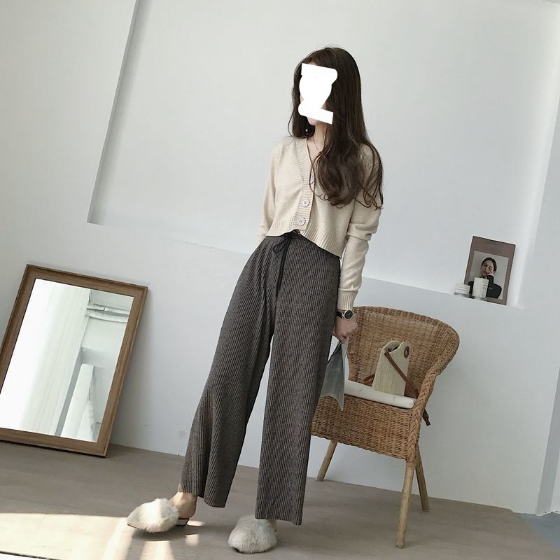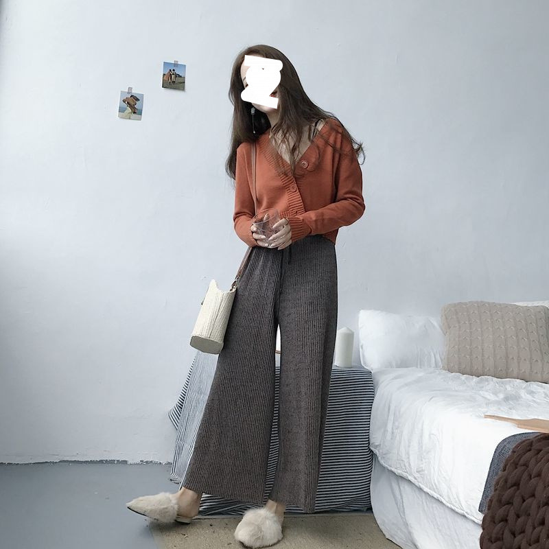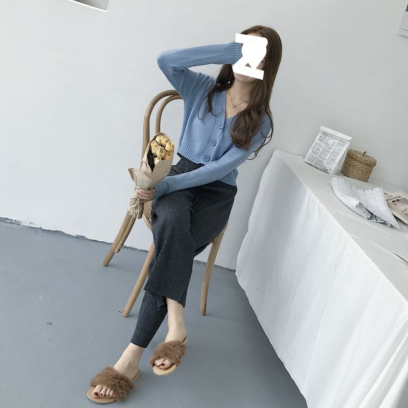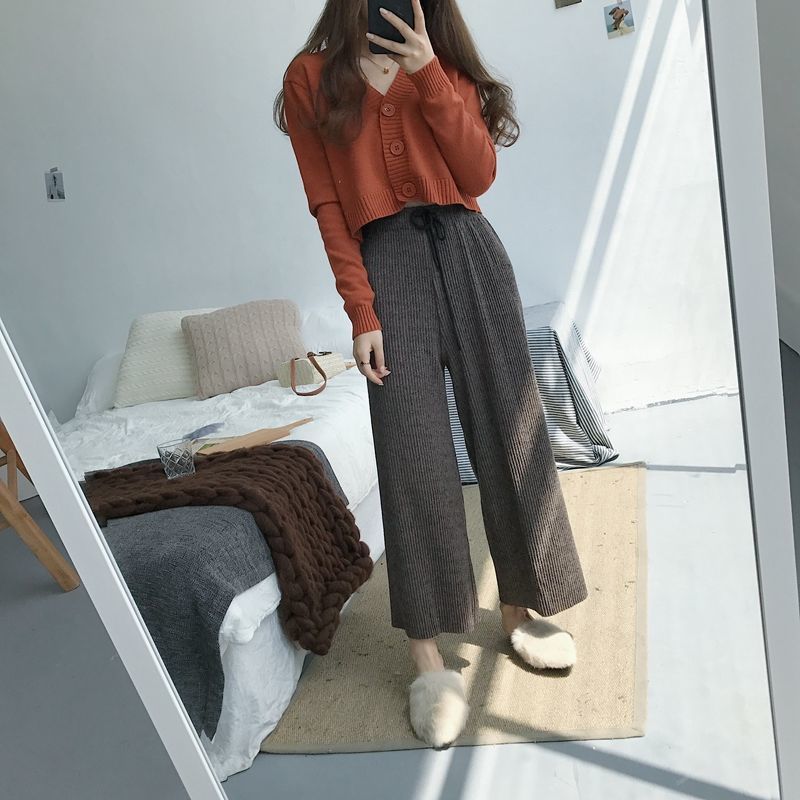 香港の味のレトロなvネックの高腰の短いニットの組み合わせの純色の修身の長袖のボタンのセーターのカーディガンのコートの女性
