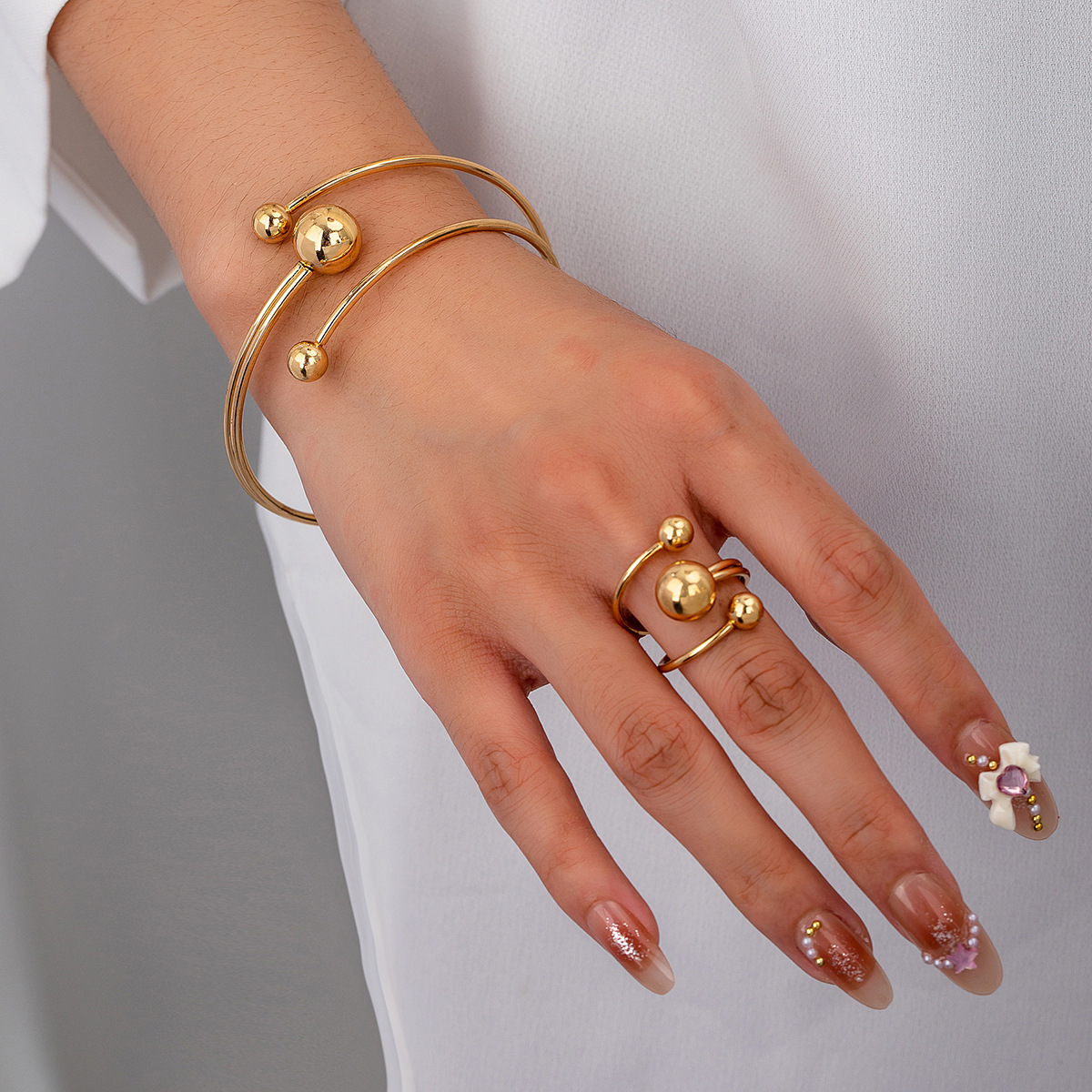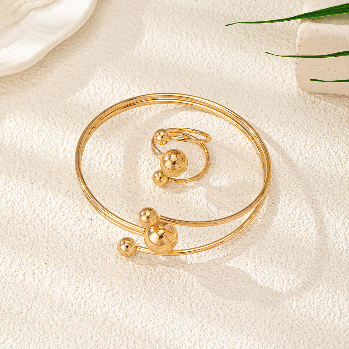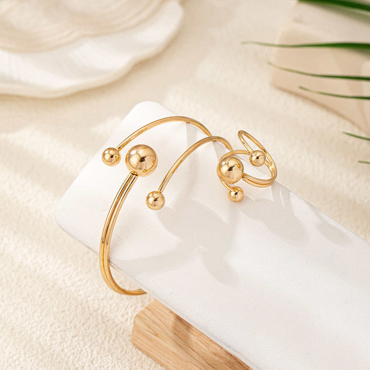 新型オープンボール光沢面シンプルリングブレスレットセットファッション個性的なデザイン